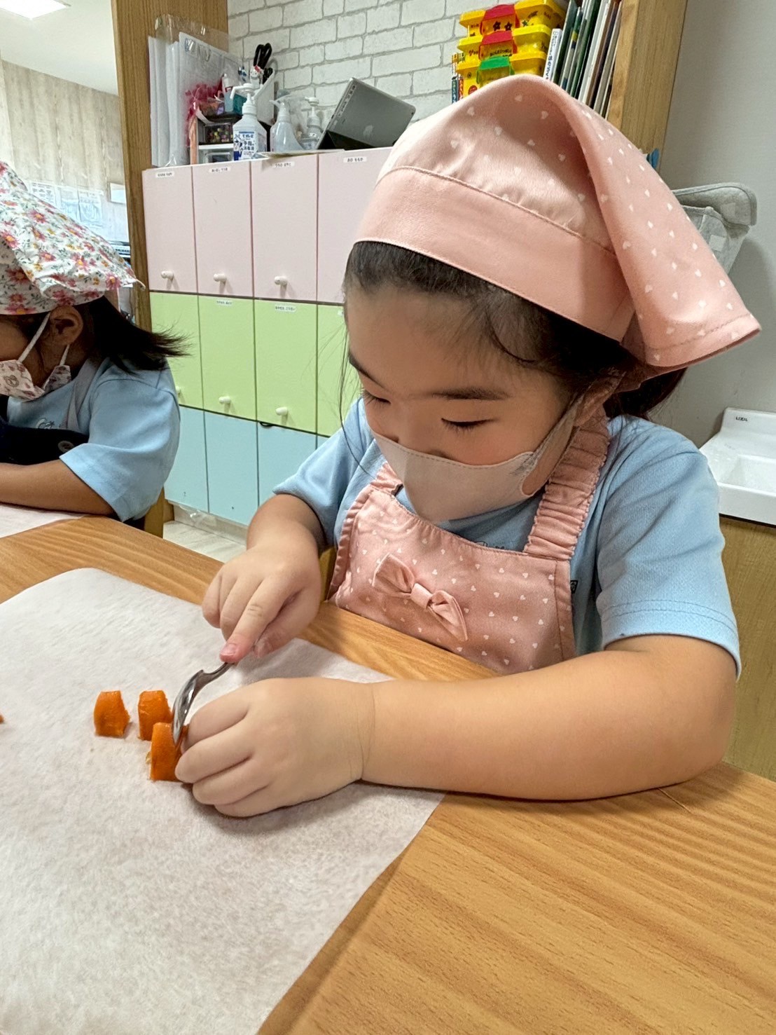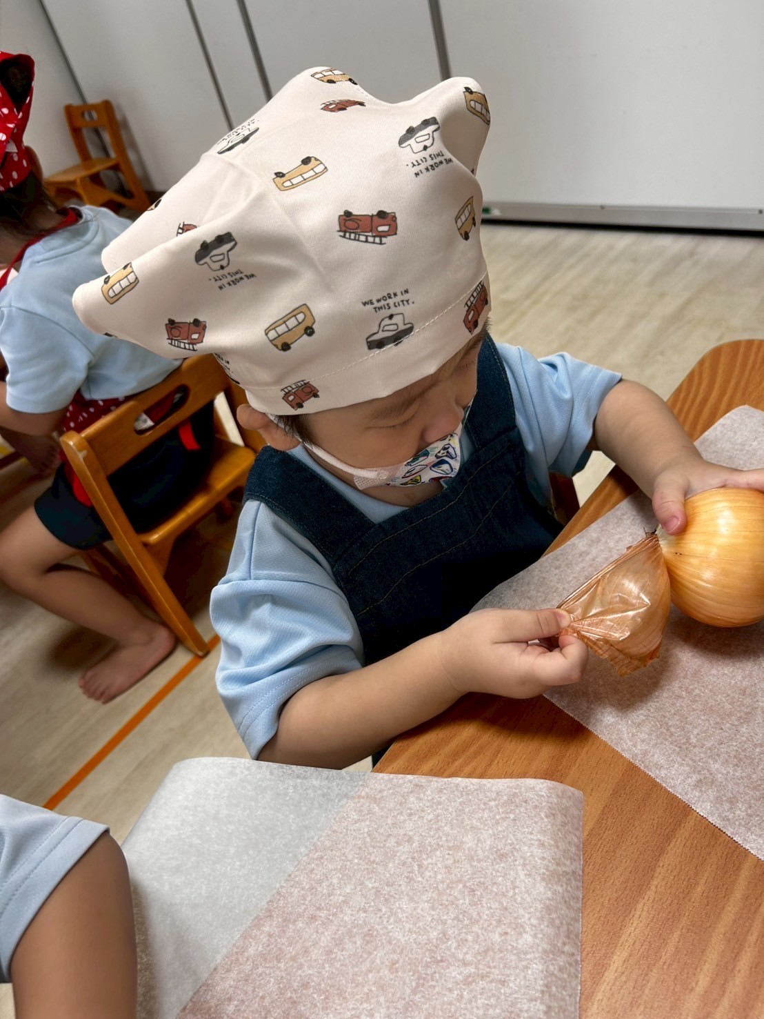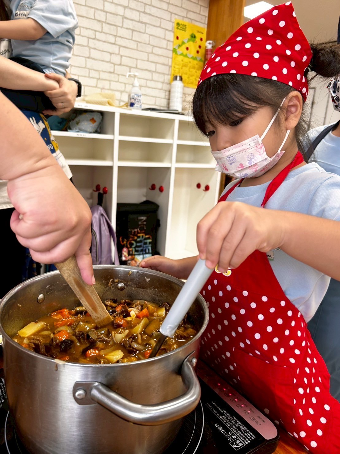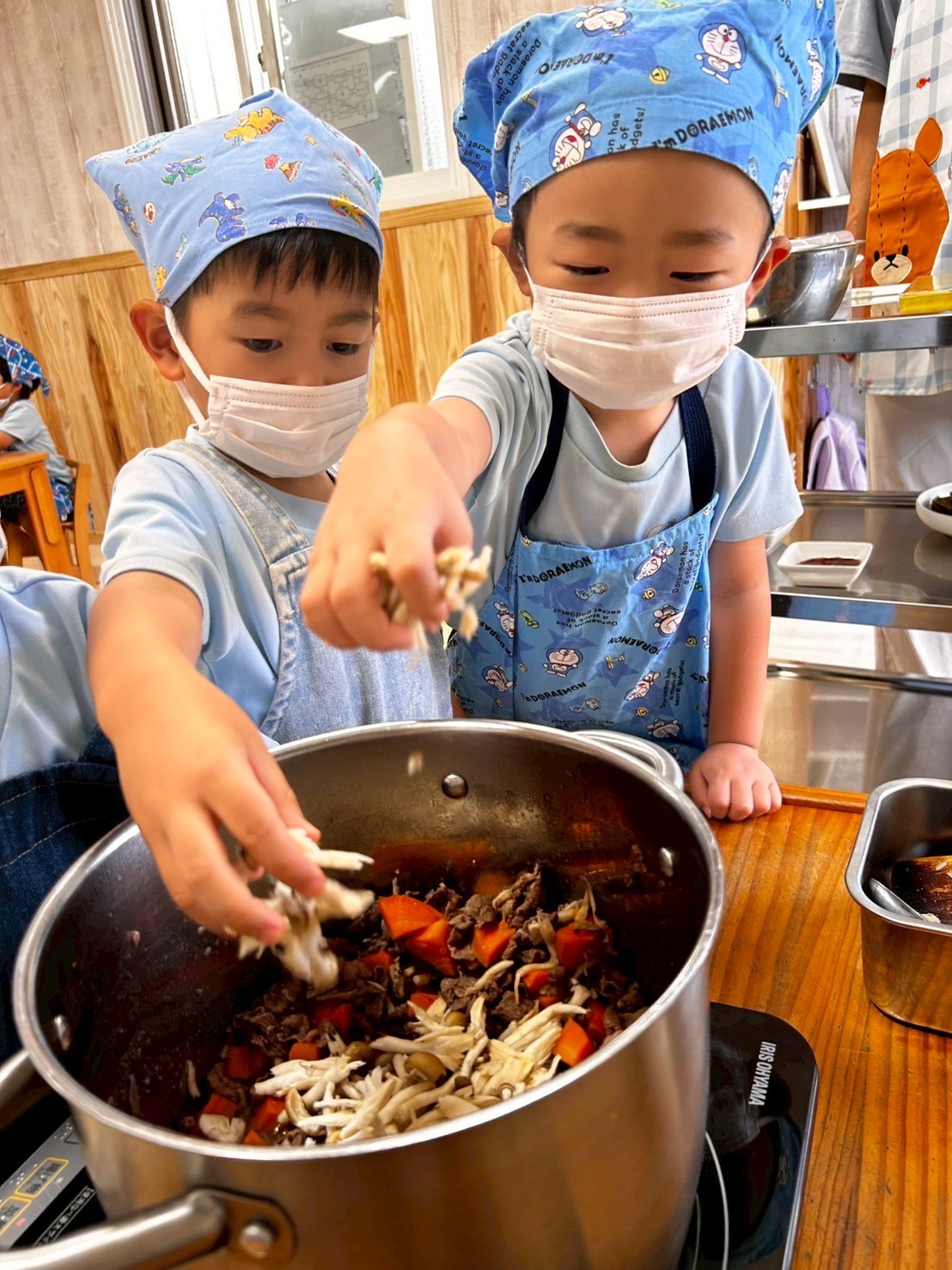 涙する子もいましたが、さすが以上児さん❣️切り替えも早く、みんなで食育のカレー作りを楽しみました😊