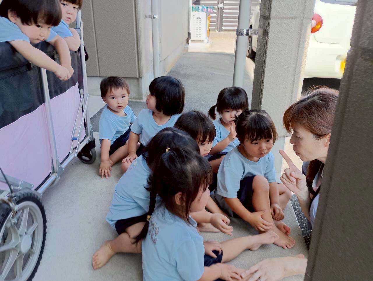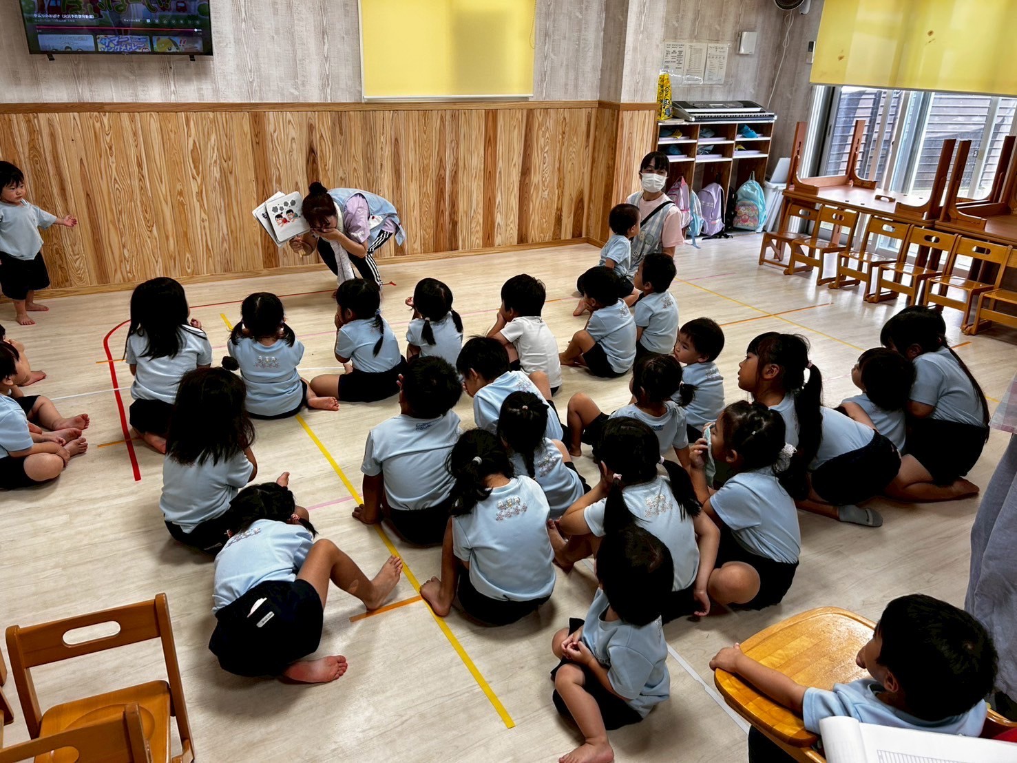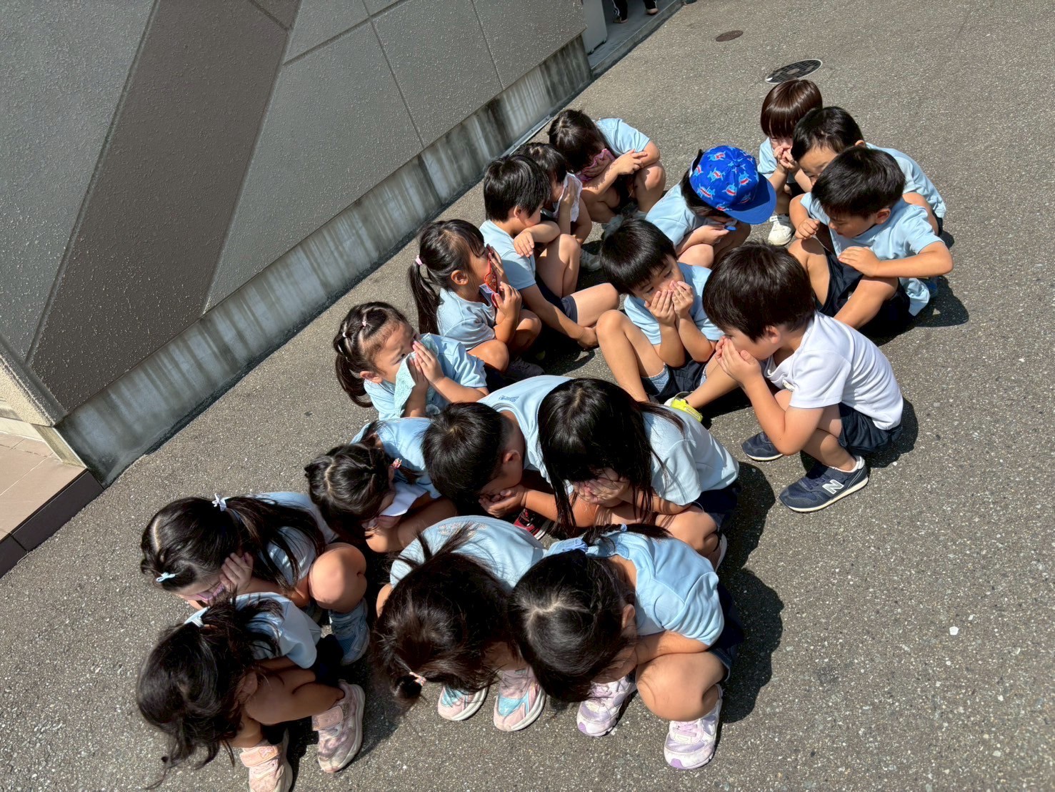 今日は絵本の読み聞かせの後、身体測定をし、火事のお話を聞きました☺️煙を吸わないように手やハンカチで口元を押さえること、姿勢を低くすること、火事を見つけたら周りの人にも知らせることなど大切なことを学びました✨実際の火事の映像も見て、真剣な表情浮かべていました‼️サイレンがなり、避難が始まってからも「お・は・し・も」の約束をしっかりと守って避難することが出来ていました👏