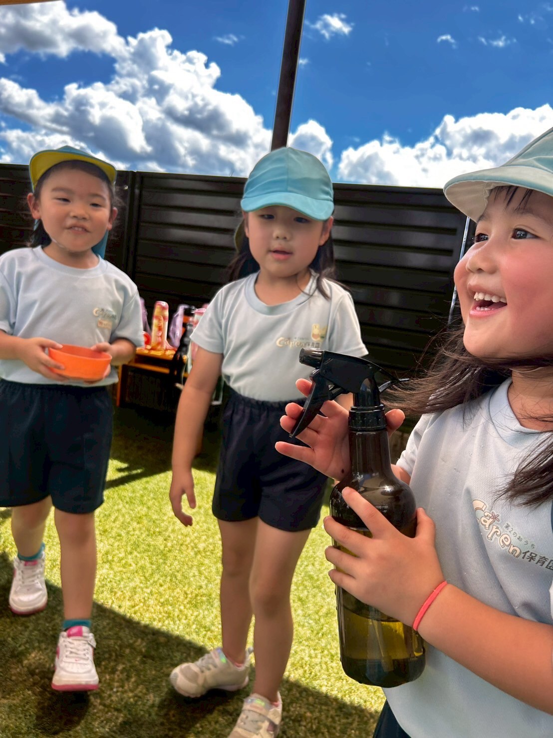 レッスンの後には短時間ですが、園庭で遊びました🌞とっても暑かったですが、やっぱり外遊びは気分がスッキリしますね💖