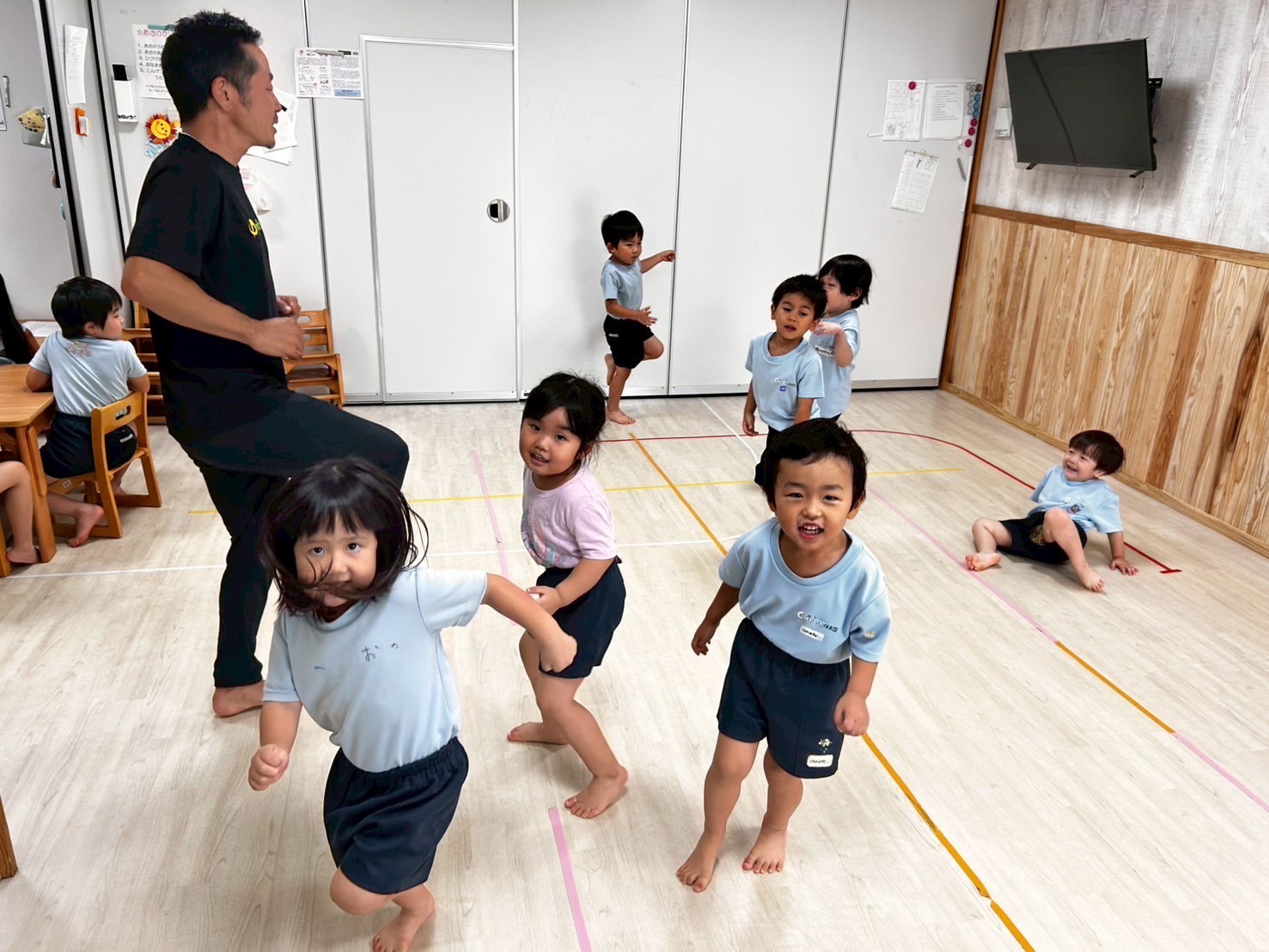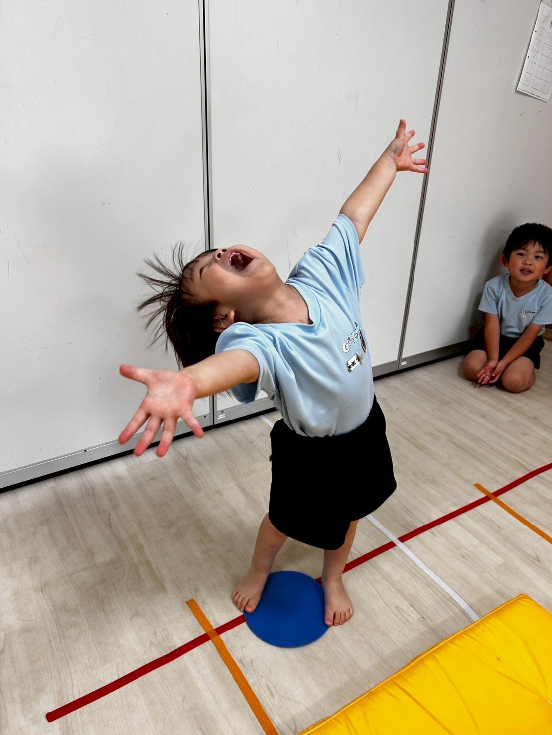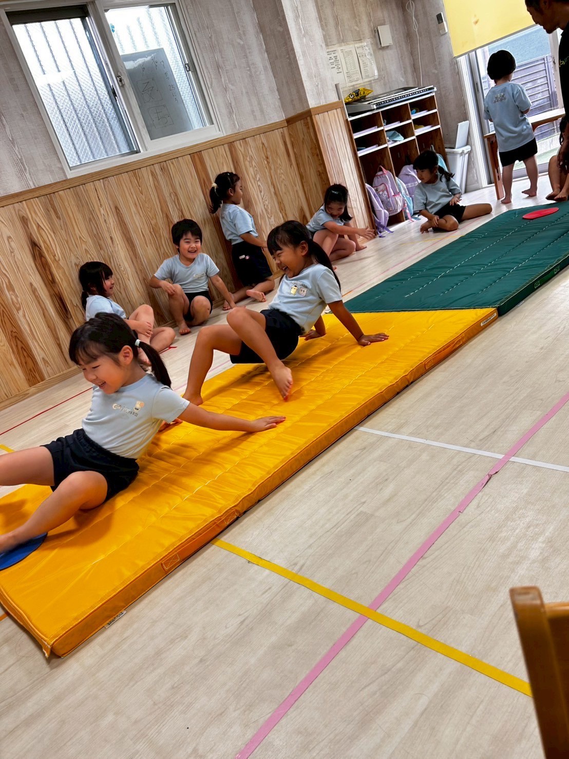 今日は絵本の読み聞かせの後、体操教室でした🤸‍♀️動物歩きでウォーミングアップをした後、前転や飛び込み前転、きりんぐみさんは側転の練習もしましたよ🤗💕