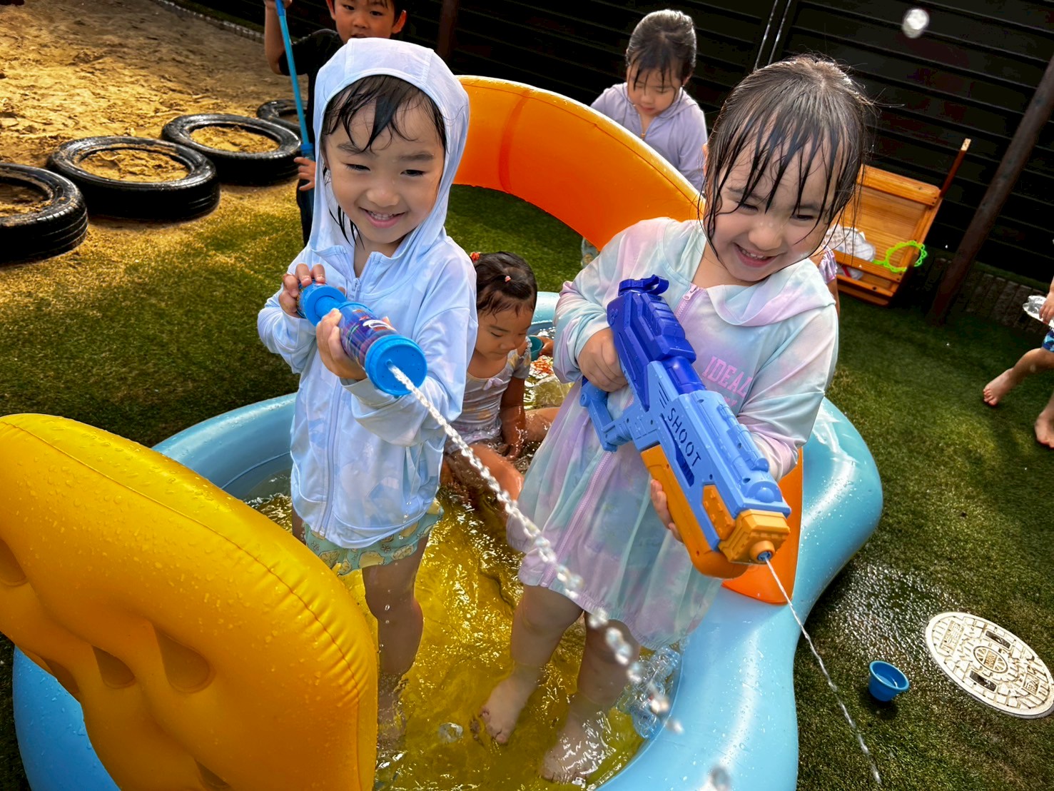 今日は水遊びの日でした💕名島園からぱんだ組のお友達が遊びにきてくれましたよ🥰