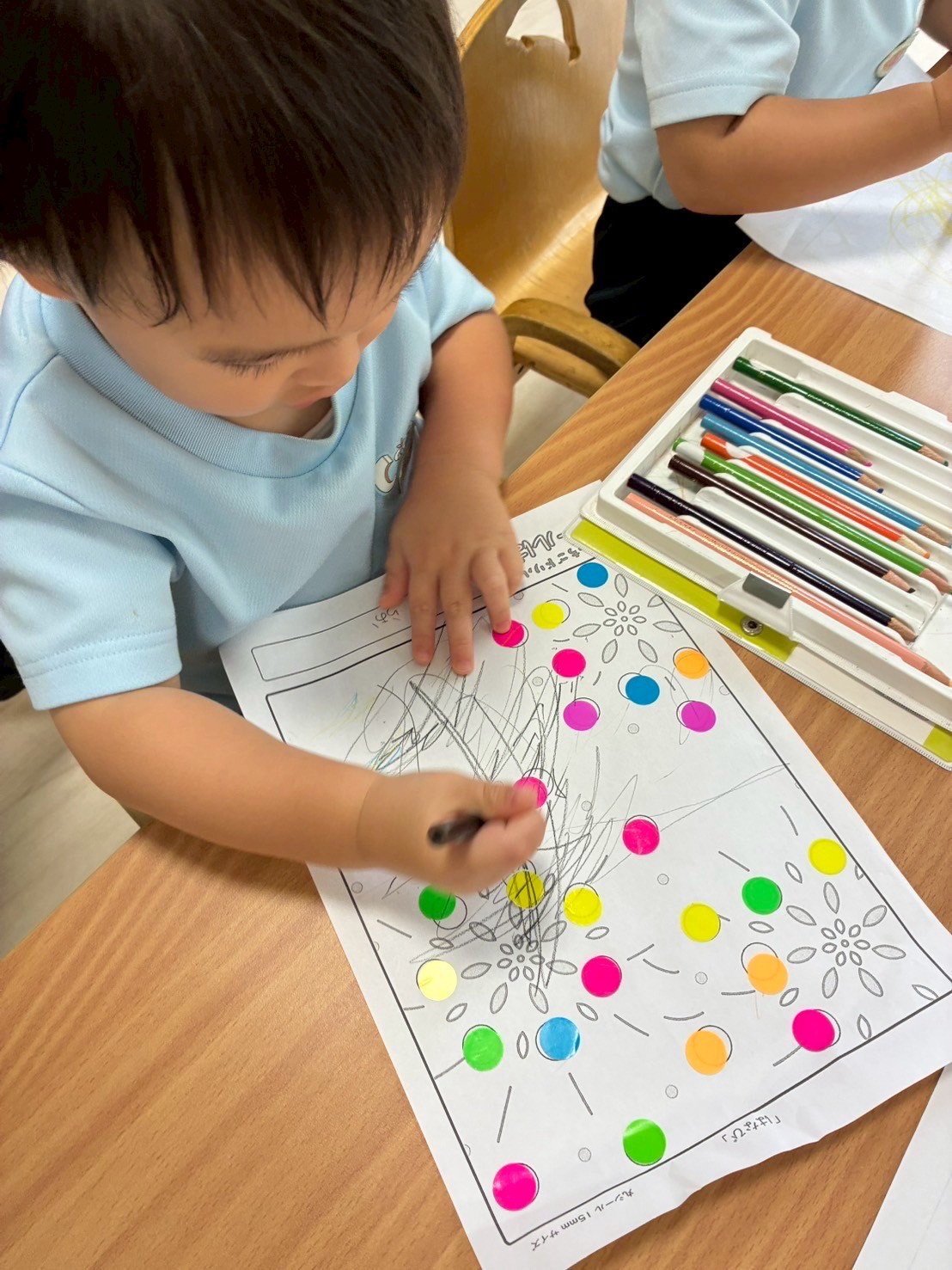 そのあとシール貼りをしましたよ🎇指先を器用に使いシールを剥がして貼りました🌟