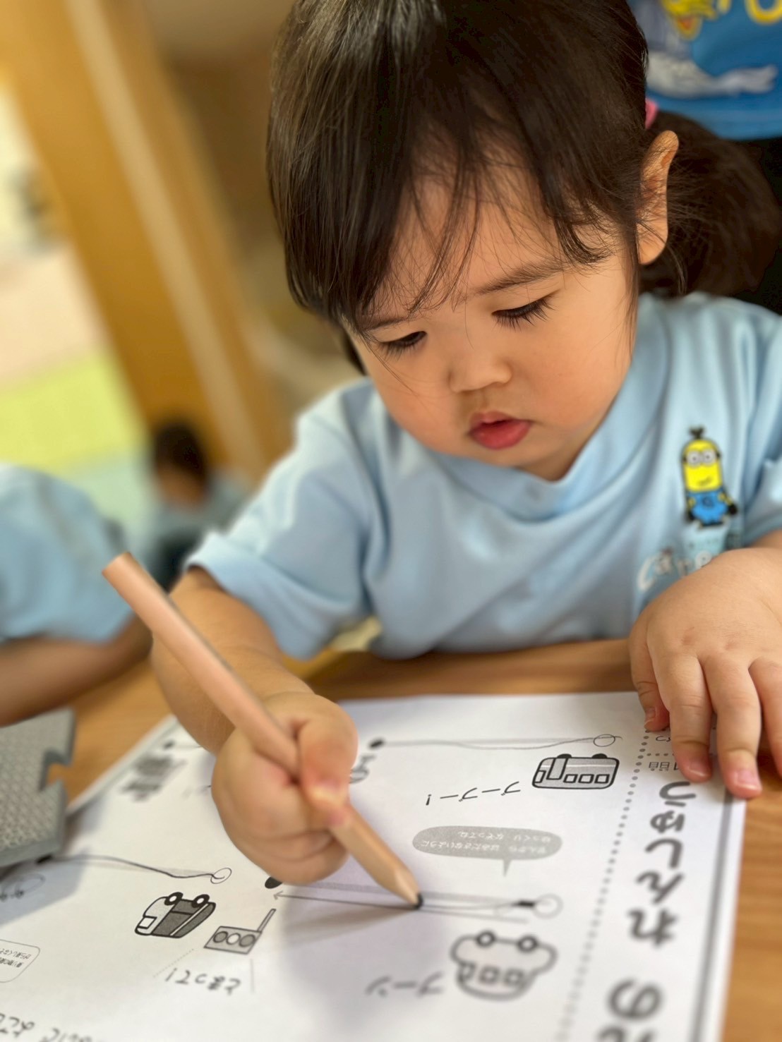 ぱんださんにはえんぴつ✏️線描きに挑戦したいと意欲的なお友だちが🌟✨鉛筆の持ち方まで意識しながらビー💕ストップ❣️と掛け声をかけながら真剣な表情で挑戦できていましたよ✨成長が嬉しい限りです🥰【うさぎ・こあら・きりんぐみ】
