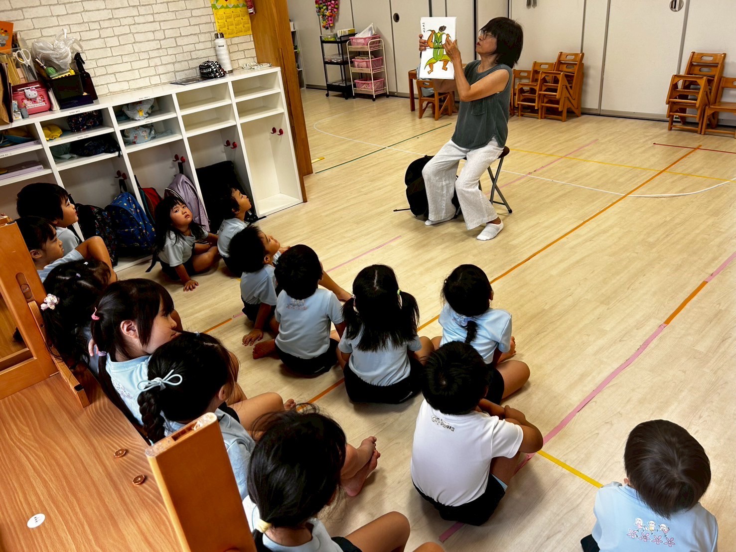 絵本の読み聞かせでは、先生の動きに笑いが🤭