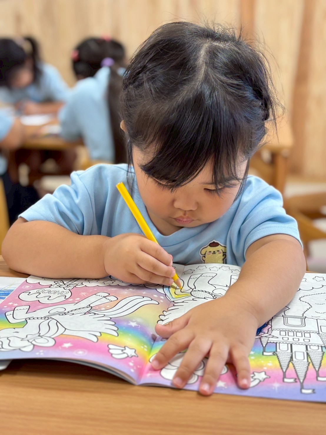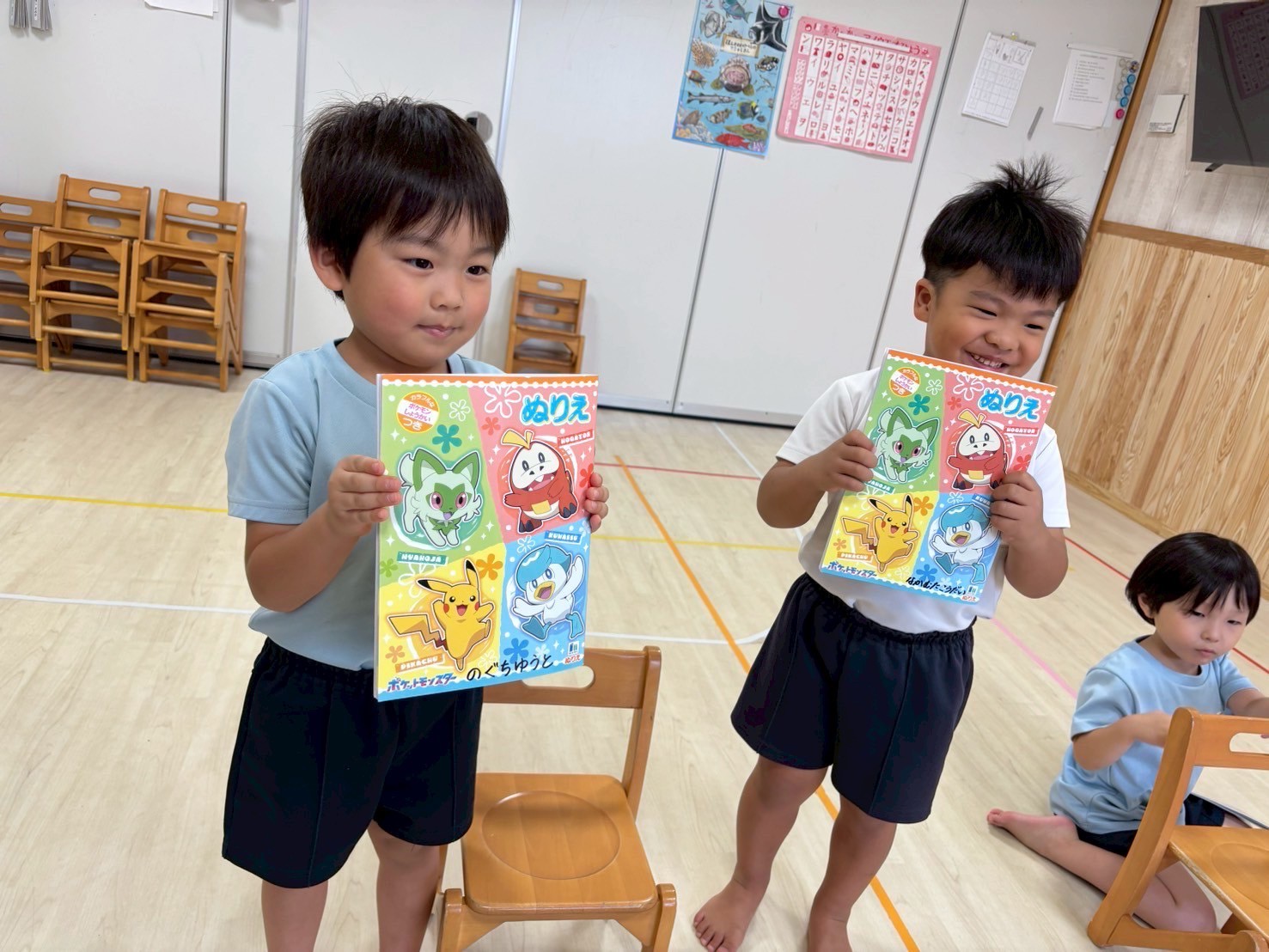 その後、先日お知らせしていた「ぬりえ」をしました✏️お家の方と選んだとあってキャラクターもさまざまで、市販のものや手作りのものなど色々ありました😆お家の方に買って頂いたから、大切に使おうねとお約束をしています🩷ぜひご家庭でぬりえのページを開き、親子の時間を楽しんでくださいね😍