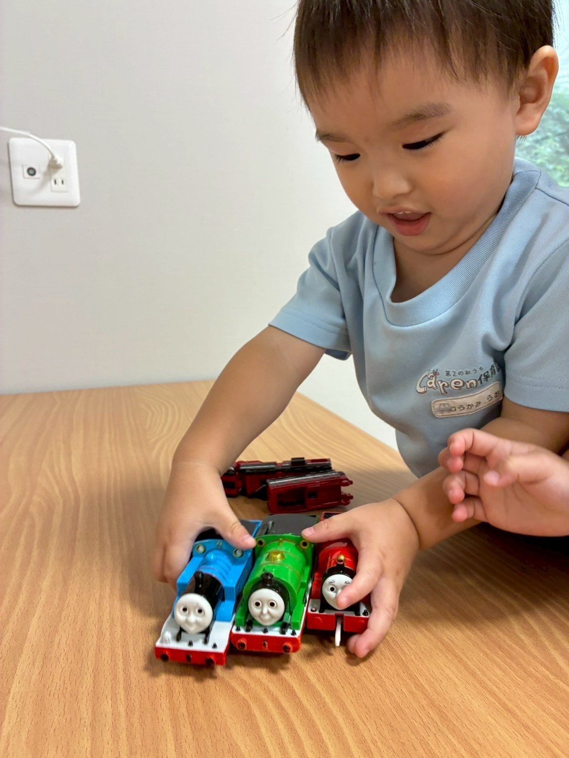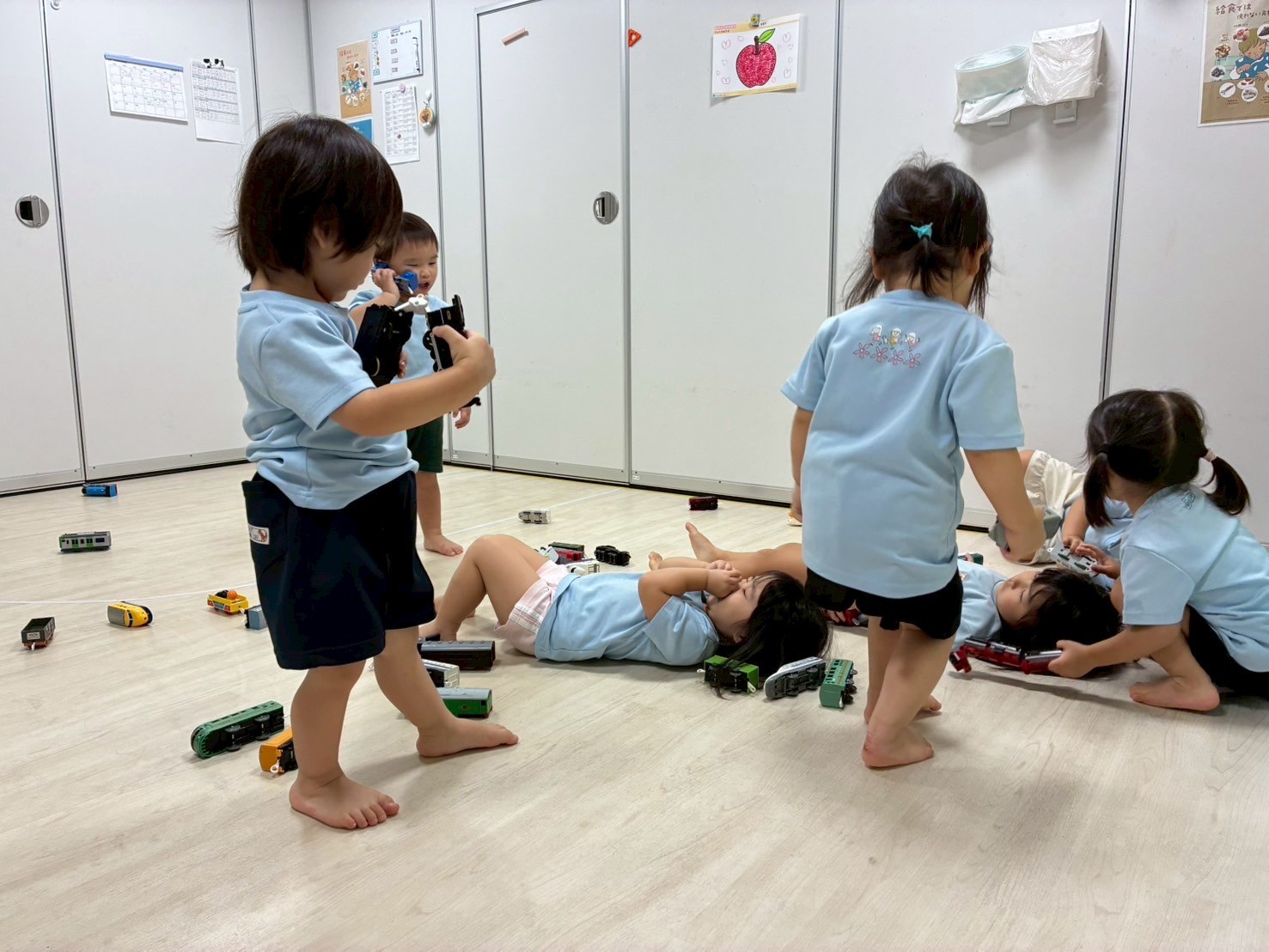 「入りたかった〜😢」と残念そうにしたいた子どもたち。次入る時は晴れますように🙏✨とお願いしました🌞室内でプラレールで遊びました🚃