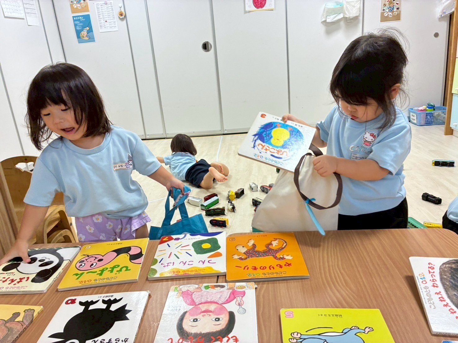 今週の貸し出し絵本も悩んで決めた子、一目で選んだ子色々でしたが、お気に入りの絵本を選んだパンダさんです💕【うさぎ・こあら・きりんぐみ】