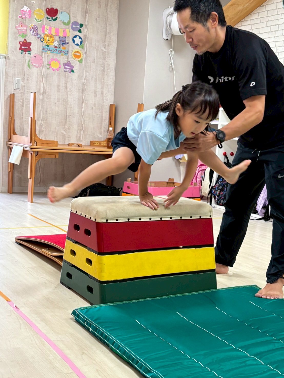 体操教室では飛び箱に挑戦し、山登りをしたりジャンプをしたり、かえるになって乗ったり飛び箱を飛び越えるための練習を様々な形で行いました😆恐怖心が自信に変わり、表情に表れていくようすが微笑ましかったです☺️