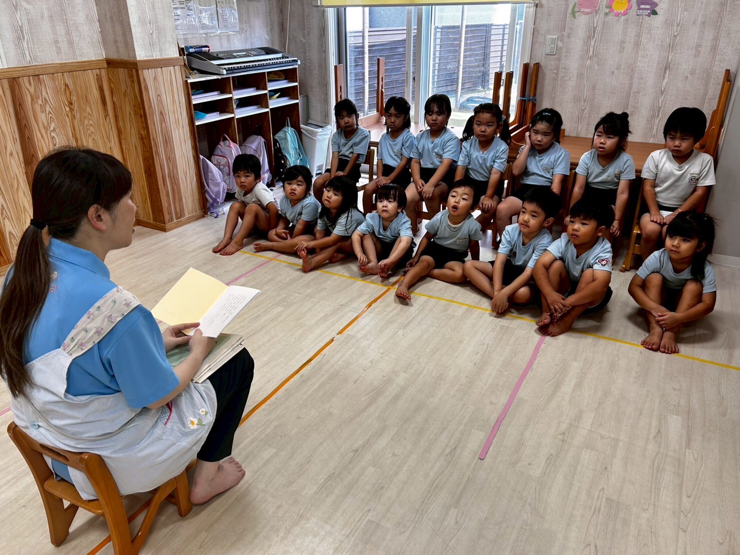 今日は朗読をしてみました❣️いつもは絵本で絵を見ながらお話を聞きますが、今日は保育者の音声のみで自分なりのイメージを頭の中に広げます☺️✨なかなか不思議な感覚だったと思いますが、ちゃんと世界に入り「面白かった!」「怖かった!」と感想を言ったり、出てきた登場人物を答えることもできていましたよ😚💕