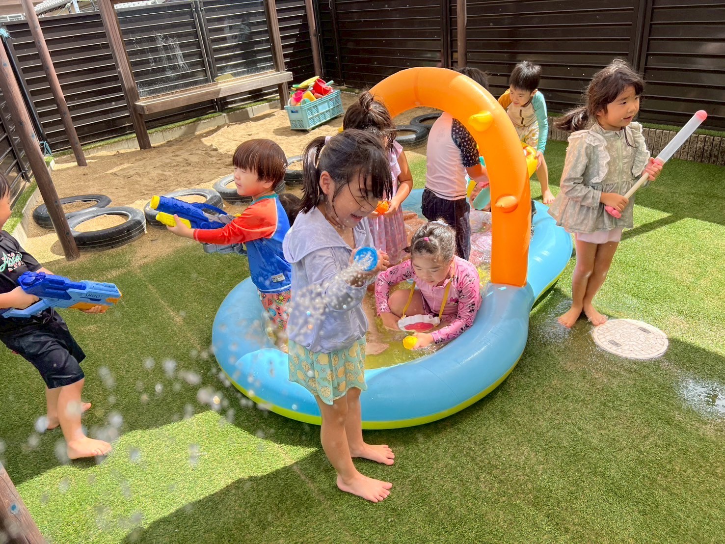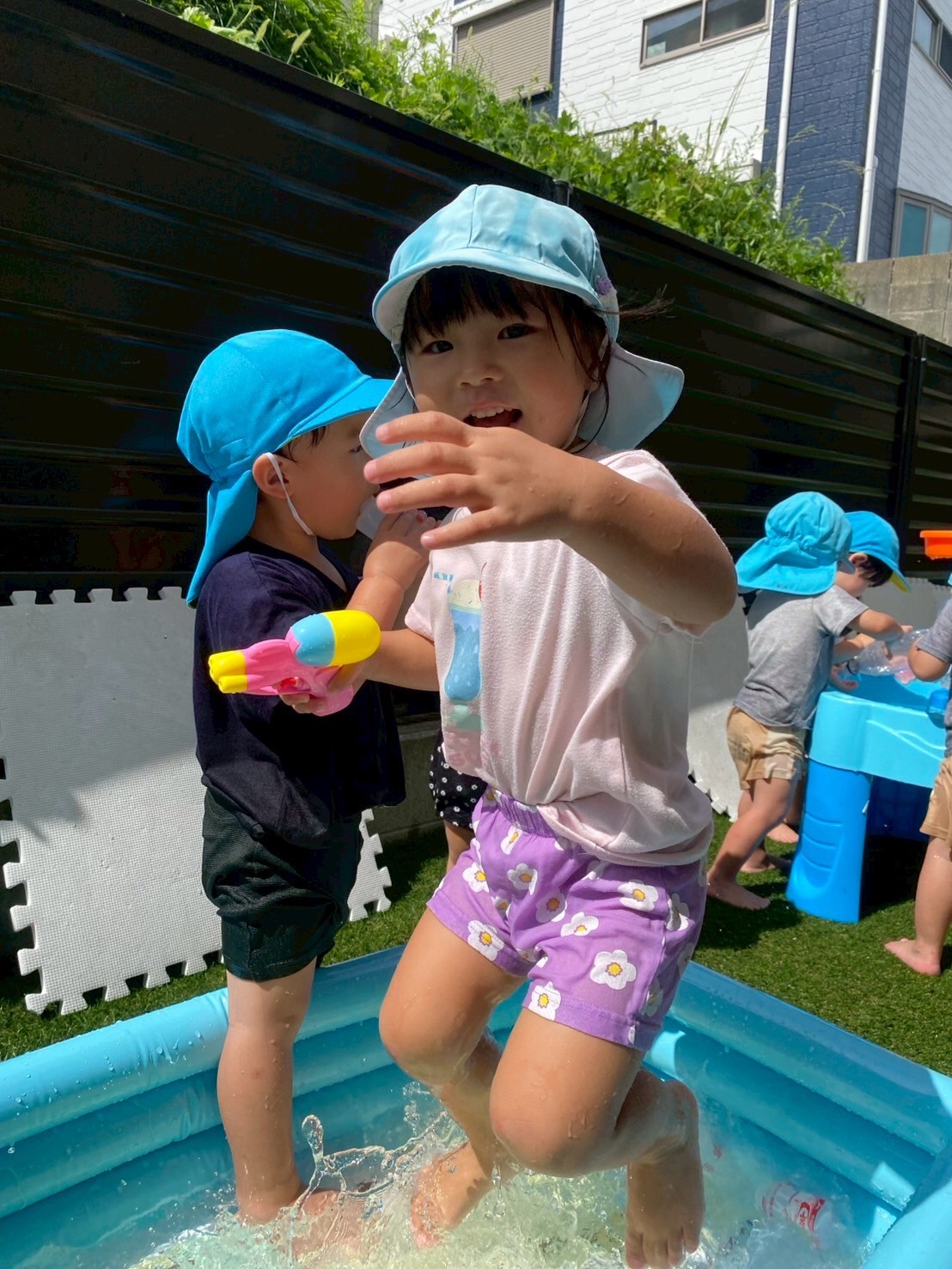 その後は水遊び🚿😍水を汲んだり、プールに入ったり涼しい時間を過ごしました✨【うさぎ・こあら・きりんぐみ】