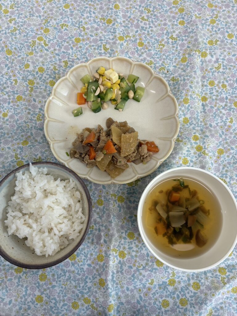 クラス順を待つ間は、外で遊びたい子!部屋で過ごしたい子!と分かれて各々したい遊びをしました🤗【新宮園の今日の給食です】