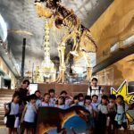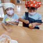 ついにこの日がやってきました✨思い出遠足🎵ちょっと緊張しているかな⁉️と思いきや、楽しみで仕方ない様子でした😊みんな揃ったら、しずか先生が運転する園バスに乗って赤間駅まで行きます🚌道中、小雨が降ってきましたが、駅に着く頃には雨もやんで一安心です😅9:51門司港行きの電車に乗りました🚃初めて電車に乗る子もいて、嬉しそうでしたよ😆スペースワールド駅で降り、5分程歩くといのちの旅博物館に到着です🦕ティラノサウルスや35メートルもあるディプロドクスがお出迎えしてくれ、その迫力に驚きながら見学しました✨スタンプラリーや恐竜がいた頃の雰囲気が味わえるブースなど、興味津々でありながらもリアルすぎてちょっと怖くなる子もいました😱おまちかねのお弁当タイムとおやつタイムは、『先生〜お弁当みて〜🍱』『今日、このおやつ持ってきたと😍🍭』と会話もはずみましたよ❤️帰りの電車は慣れたもので、落ち着いて乗ることができました🚃ありがたいことに、子ども達が電車に乗ると、席を譲ってくれる方が沢山いて、本当に嬉しかったです☺️赤間駅について、バスでくりえいと園まで移動したら、いよいよカレー作りです🍛野菜や果物を包丁で切ったり、皮を剥いたり、炒めて混ぜて…とっても上手に作りました🥰煮込んでいる間に思い出画制作に取り組みました🖍️どの場面を描くか悩みつつ、電車に乗っている所や博物館の様子など様々で、画伯ばりに描いている子が多かったです✨そしてついにカレーライスの完成です🍛デザートにフルーツヨーグルトも作りましたよ😍カレーには、チーズの型抜きをのせて💕『いただきまーす🙏』の合図で一斉に食べ始めました😋自分達で作った晩御飯はと〜っても美味しかったです🥄すでに外は夕方から夜へと変わってきました。名残惜しいですが『このまま、くりえいと園にお泊まりしようか⁉️』と誘っても『いやだよー!ママがいいよー😆』とかえってきたので、帰り支度をしてバスに乗り込みました🚌楽しかった一日もあっという間です⭐️この経験がバスの中では可愛い寝顔がたくさんでした💤