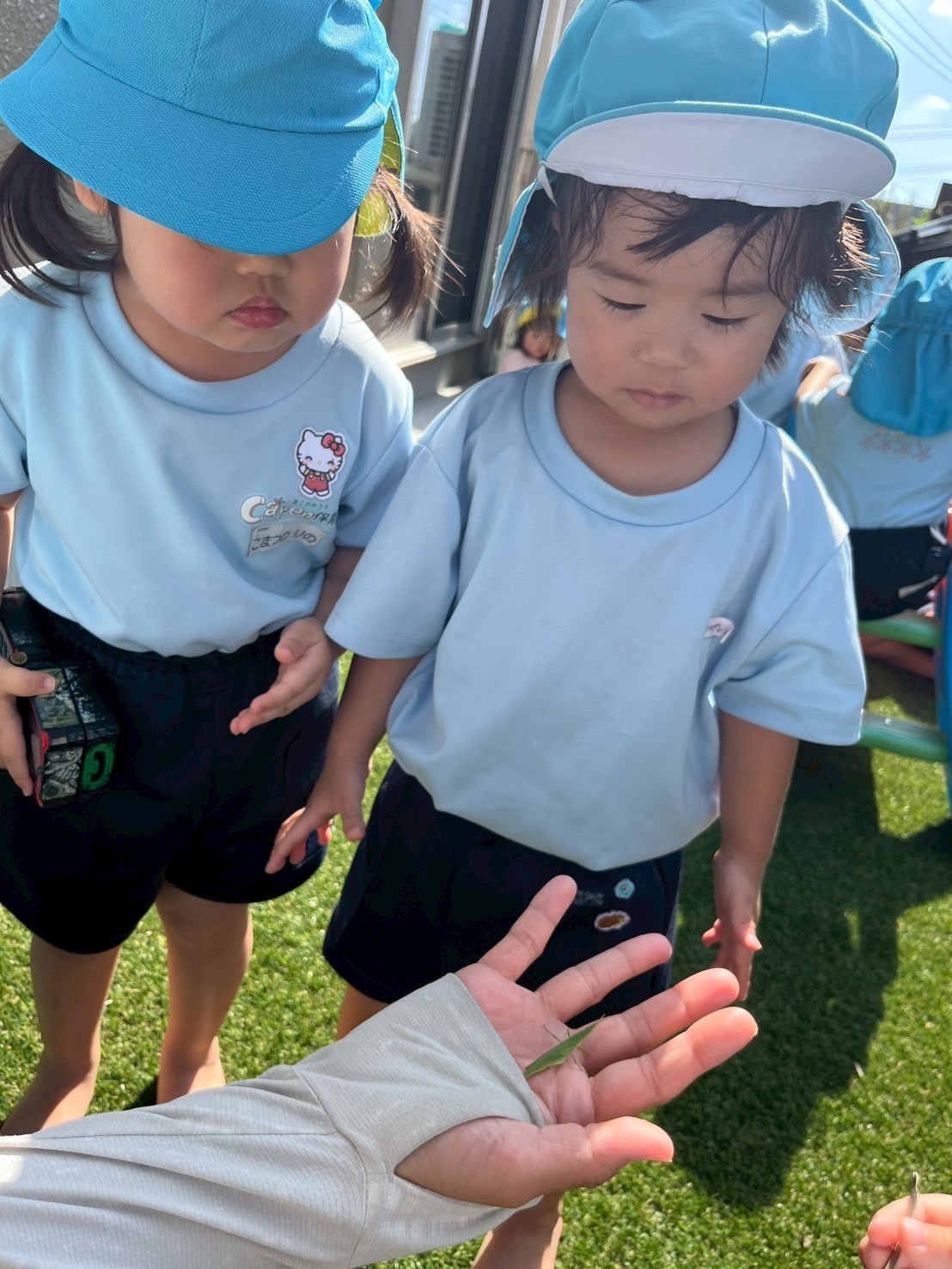 10月9日 2025.10.09 / 未分類 【ひよこ・りす・ぱんだぐみ】 絵本の読み聞かせや手遊びを楽しんだ後園庭に出てボールや滑り台で遊びました🛝草花や虫に興味を持つ子が多く「先生なんかおるー」と虫を見つけてみんなで観察していました🐛🌻 「ちっちゃい、ちっちゃい…続きを読む