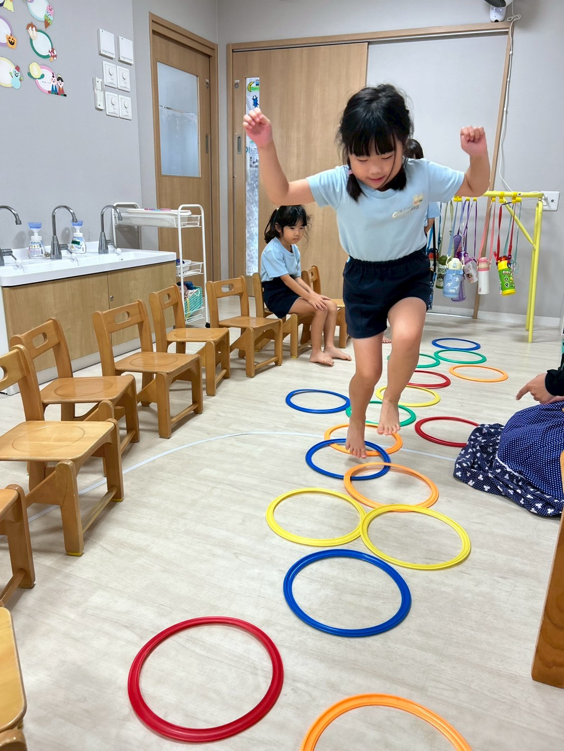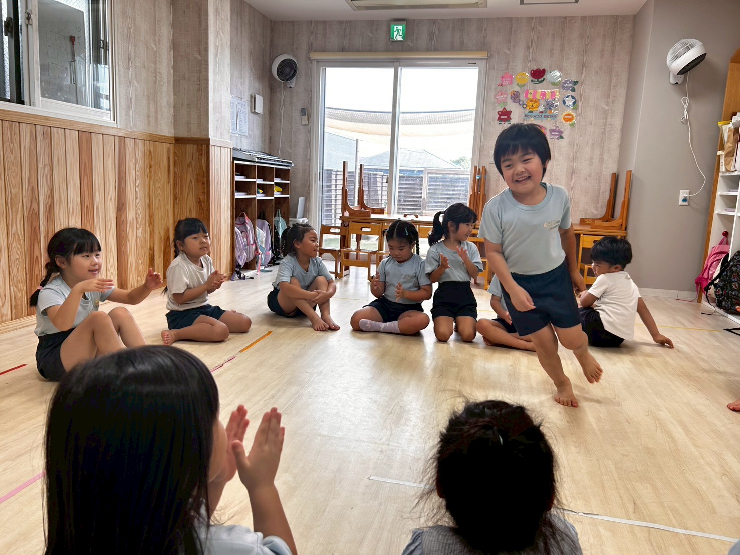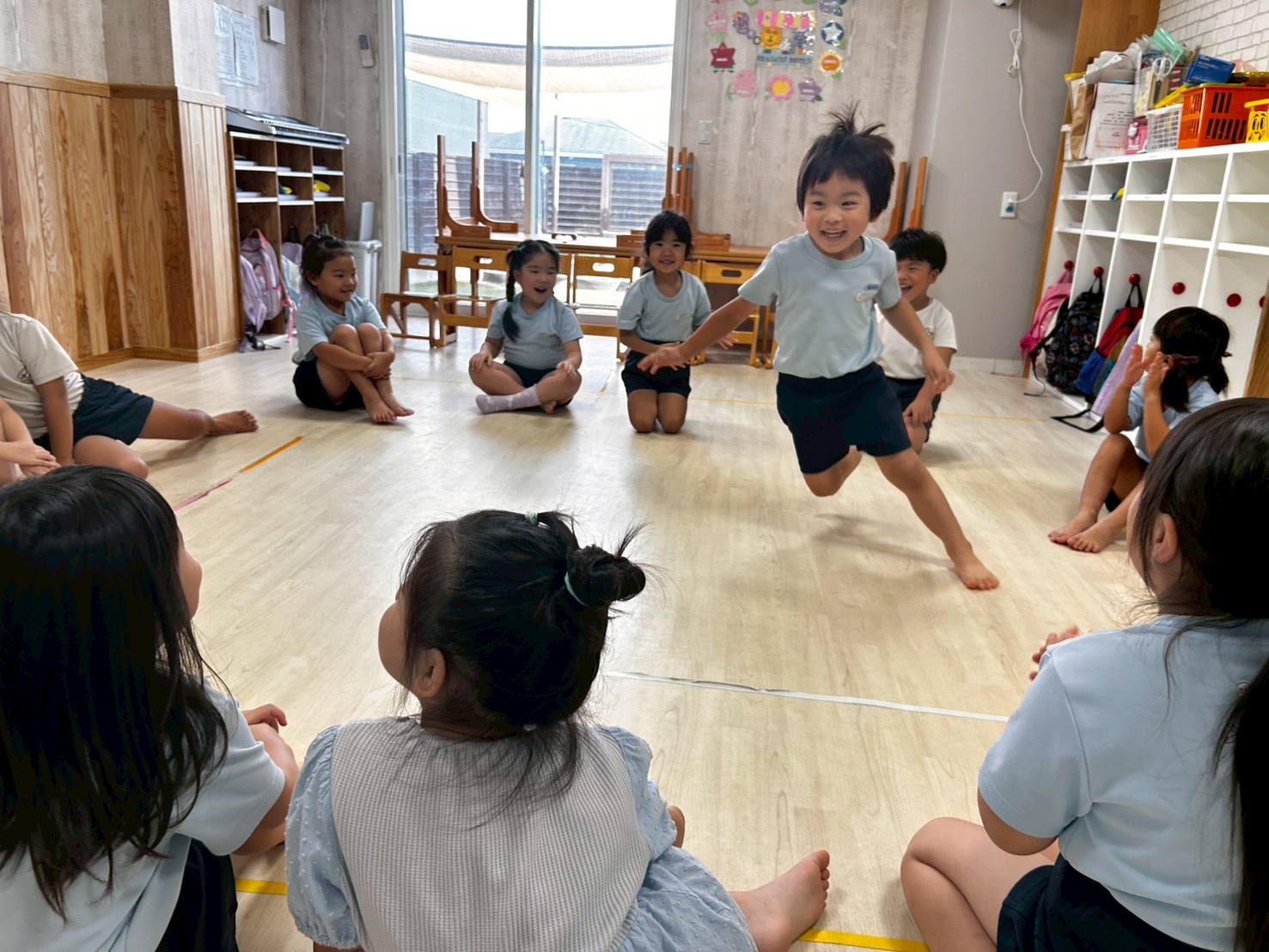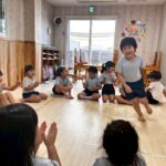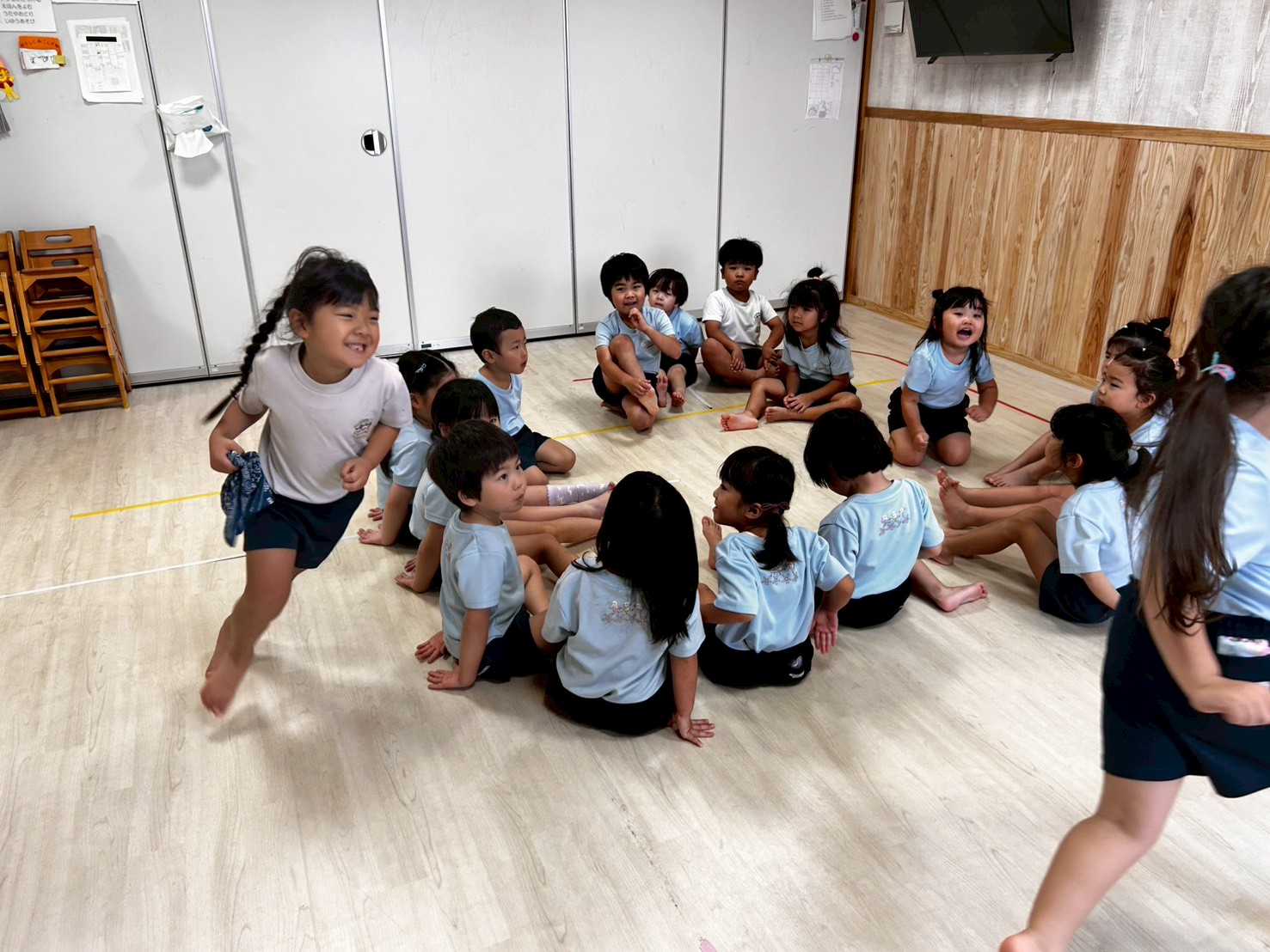 まずは歓迎遠足でも行った『誕生月のうた』でダンスタイム💃そのあとはハンカチ落としをして遊びました😍みんなルールもばっちりで楽しむことができましたよ💕