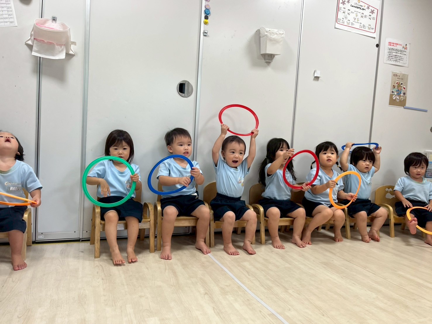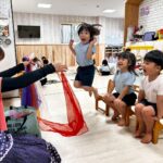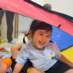 その後の大好きなリトミックではカラフルスカーフを好きな色で選び、ちょうちょの曲に合わせて表現遊びも喜んでできていました💖バスごっこもよく動きを真似て楽しんでいて、かわいい笑顔が弾けていましたよ😘