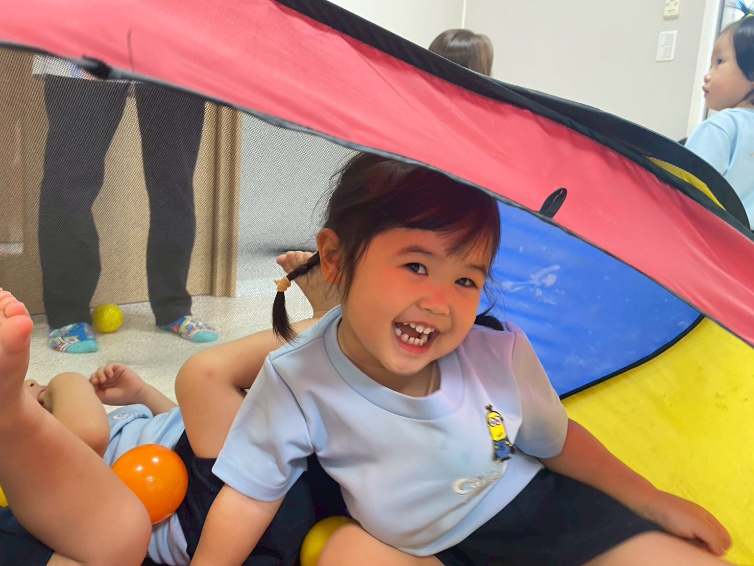 新入園児のお友だちもスキンシップで落ち着けたようで、泣く時間も少しずつ減ってきて、遊べていましたよ😍【うさぎ・こあら・きりんぐみ】