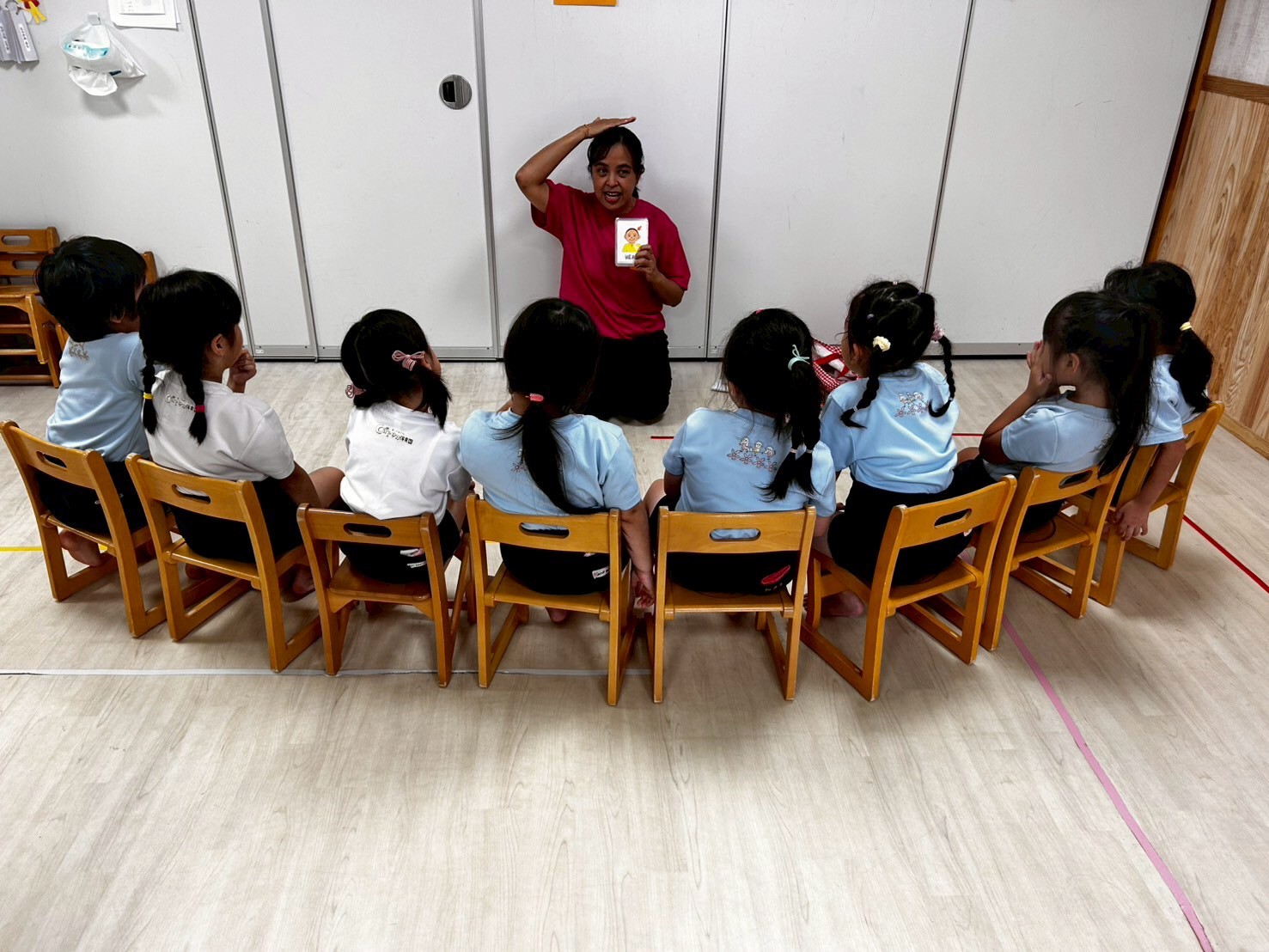 絵本の読み聞かせでは、絵本に出てくるリズムや表現遊びを繰り返し笑顔で楽しめていた子どもたち💕リアクションと笑顔がとっても可愛かったです😍