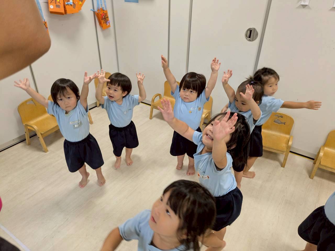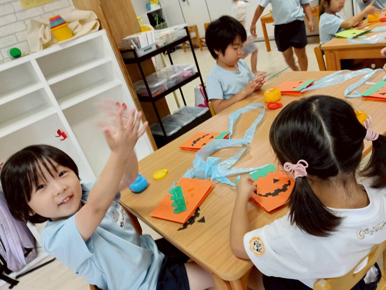 その後の英語レッスンでは、ハロウィン絵本🎃の内容によく反応しながら笑顔で楽しんでいました🌟身体も上手に動かせていましたよ💖