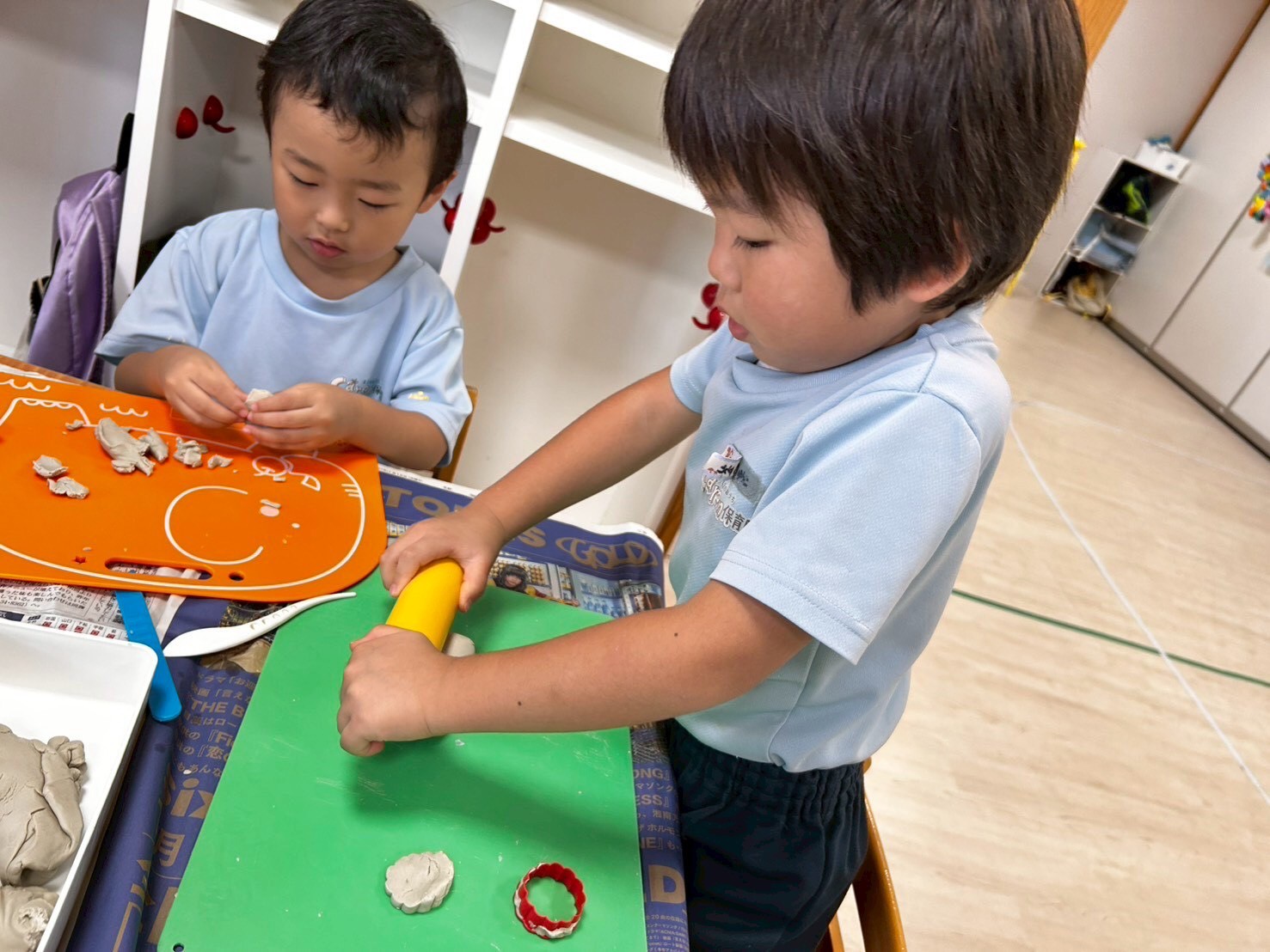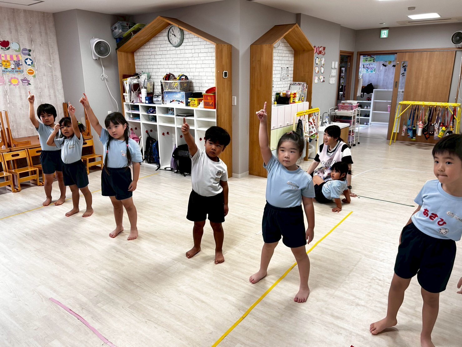 今日は「じゃない」の絵本を読んだ後、ダンス・劇の練習をしました❗️ダンスでは並び順など調整をしたり、劇では配役やセリフ、動きの確認などを行いました🤗笑顔もたくさん見られて楽しんでやっていることが伝わってきます✨きりんぐみさんは出番が多く難しいことも多いので頑張り所ですが、かっこいい姿を見せてほしいと思います💗こあらうさぎさんは練習の後、みんなのリクエストで粘土で遊びました😄道具の貸し借りも上手で最後まで飽きることなく遊んでいました😍