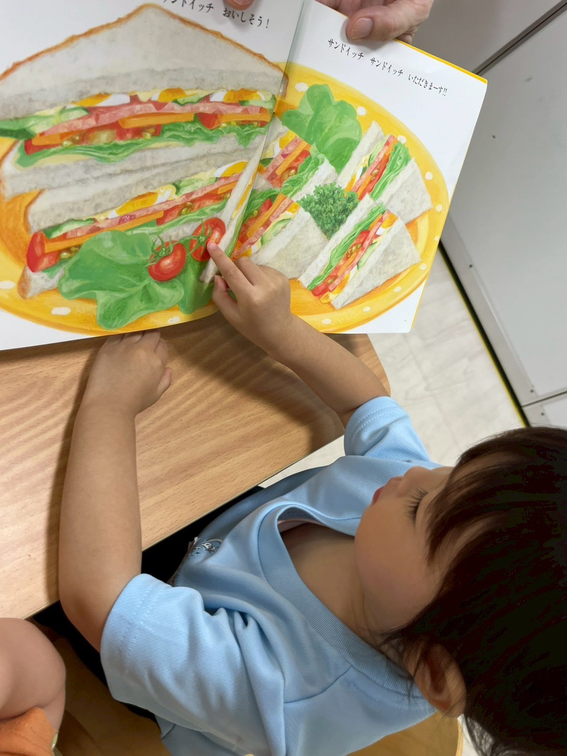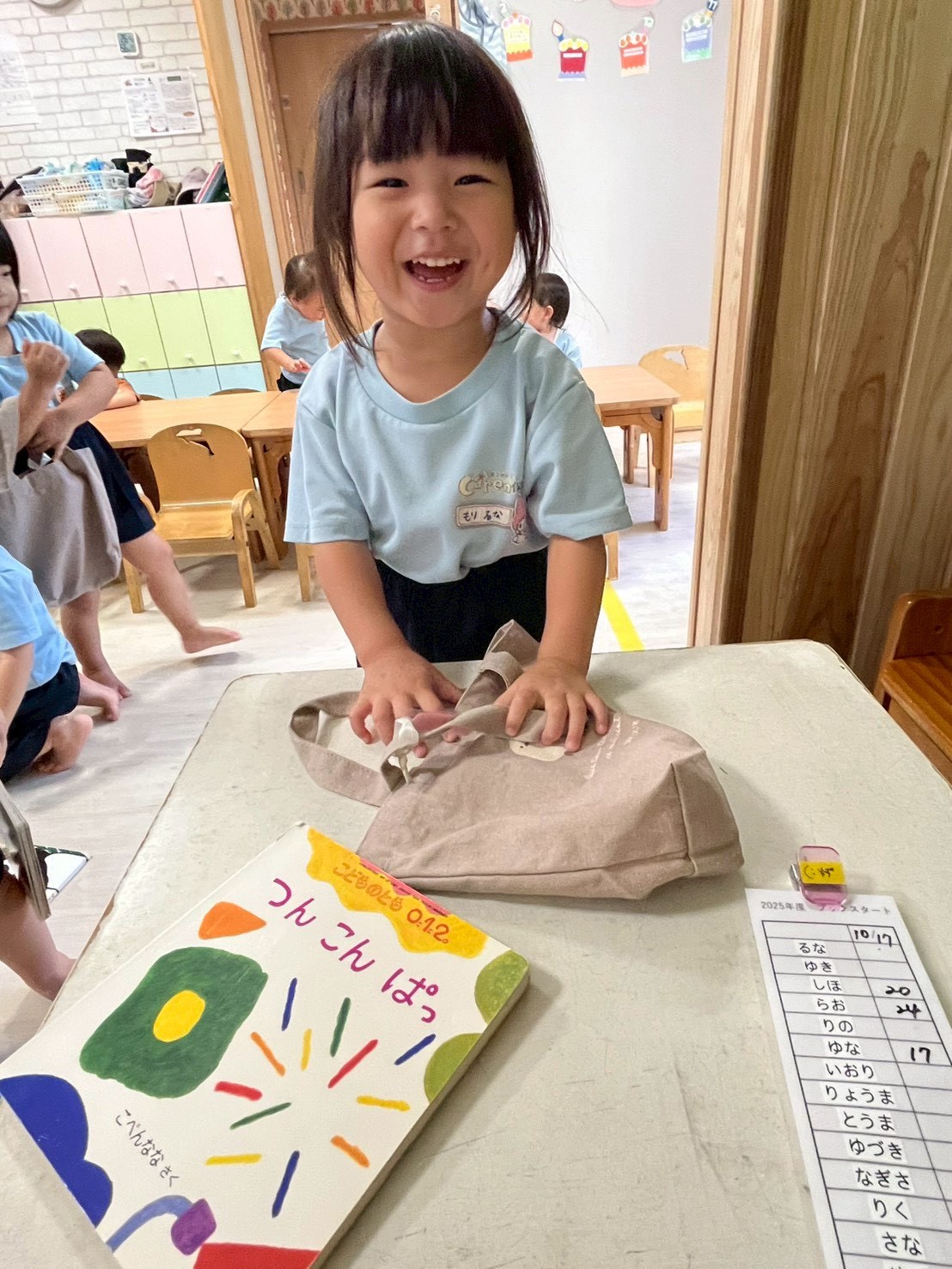 絵本バックを持って何の絵本にしようかな😊?お気に入りの絵本を持って「これくださーい😍」と先生のところに持ってきてくれましたよ❣️同じ絵本を選ぶ子📚好きな乗り物や動物、お話を選ぶ子色々います💓