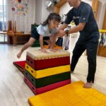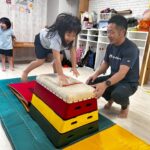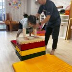今日は体操教室の日🤸♀️動物歩きでウォーミングアップをした後、飛び箱に挑戦しました❣️久しぶりではありましたが、徐々に感覚を取り戻し、飛び越えられる子大ジャンプを見せてくれる子もいましたよ😊感覚を覚えると楽しさも感じたようで笑顔が溢れていました💓