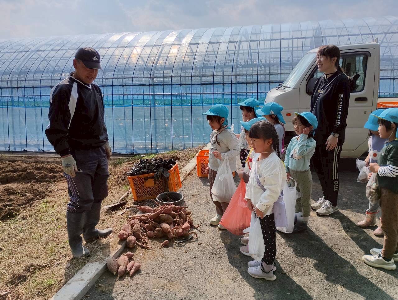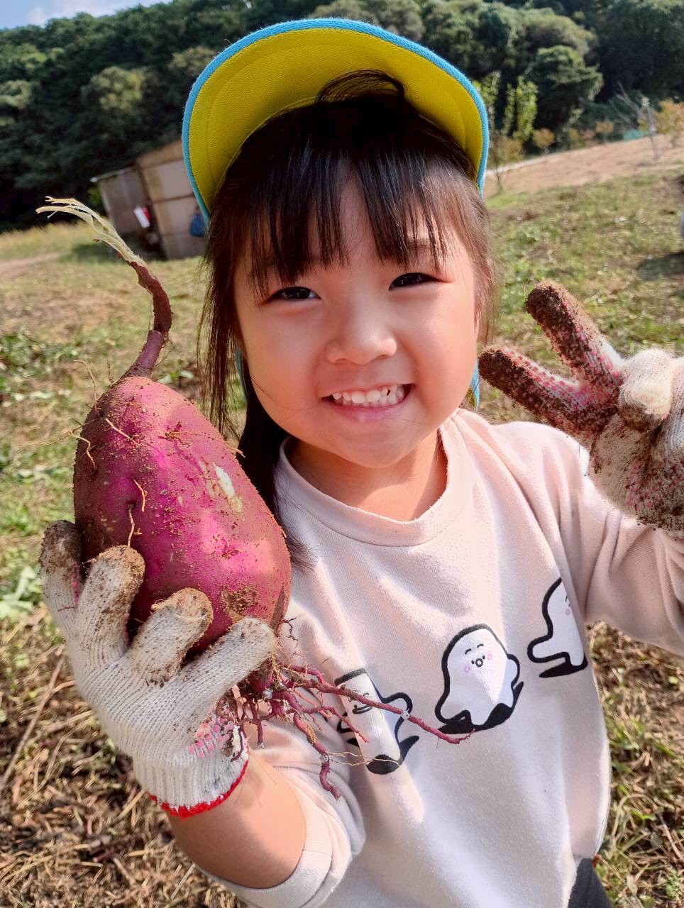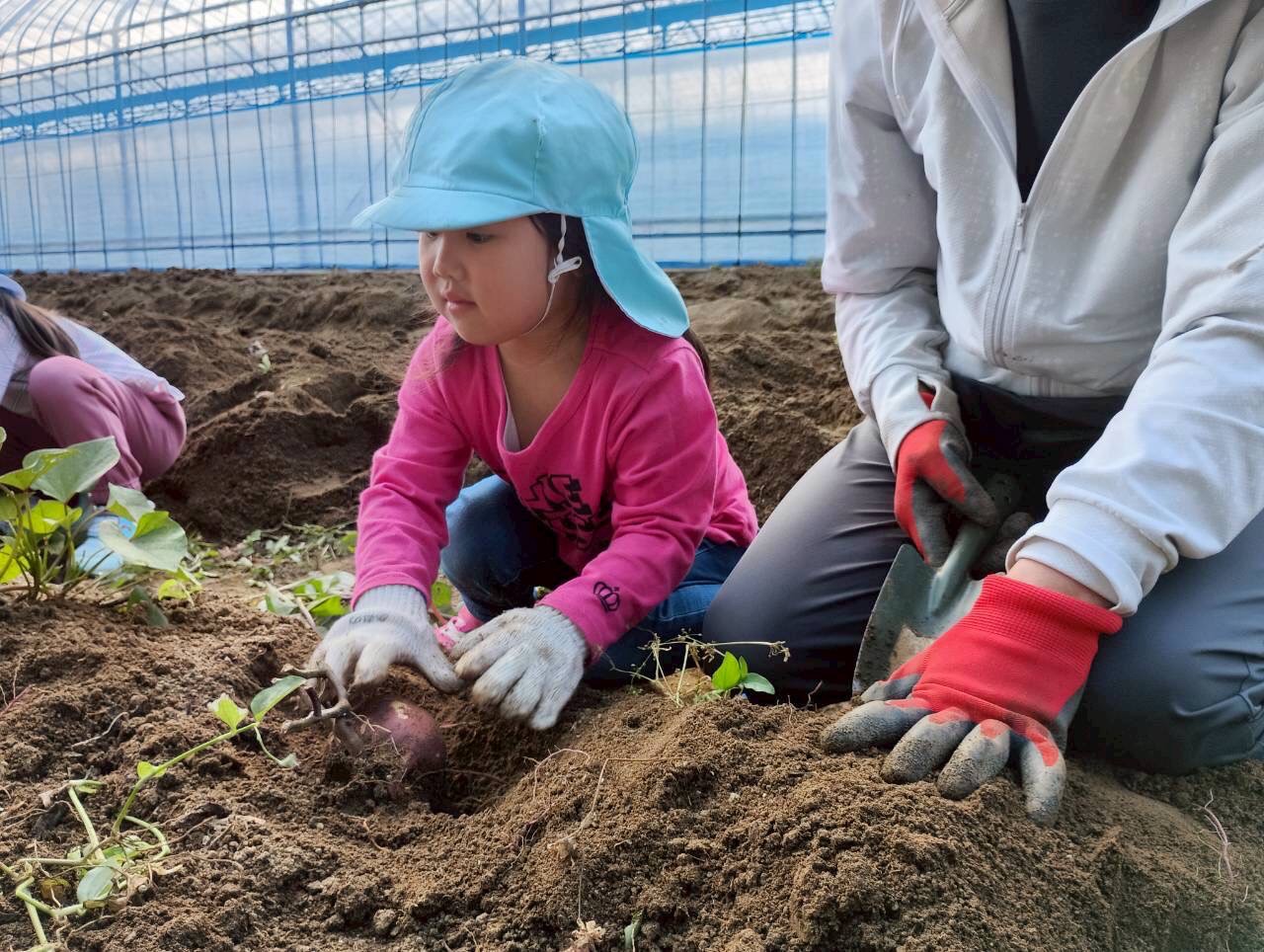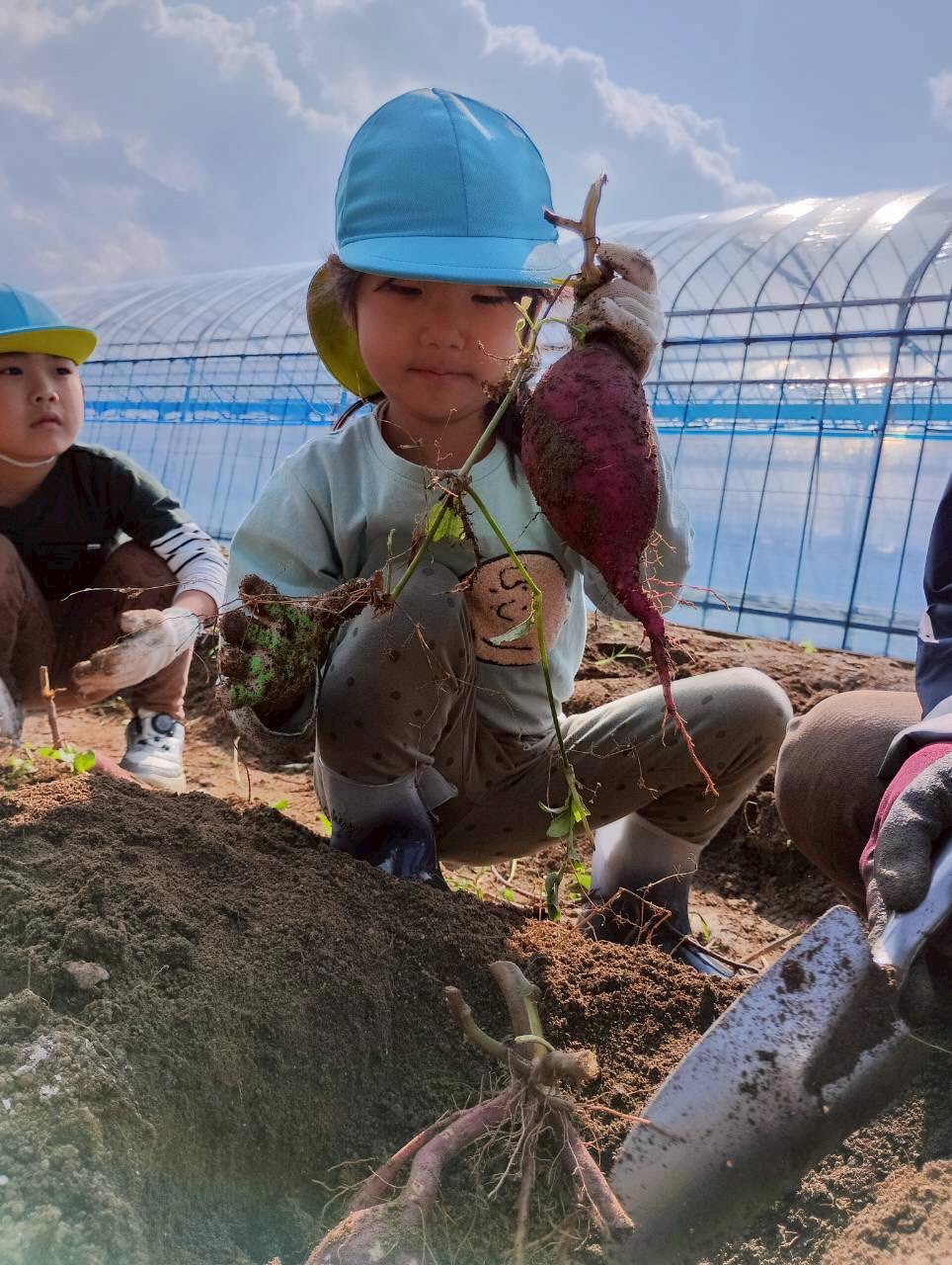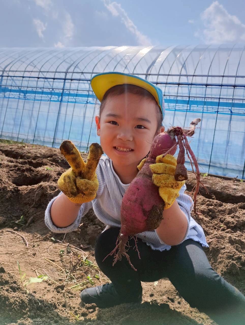 おばさんたちに『上手上手✨、ここここ!』と一緒なった🍠掘りをしてくれました!大きい🍠や小さな🍠を見つけては「先生見てみて!」と嬉しそうでした😄