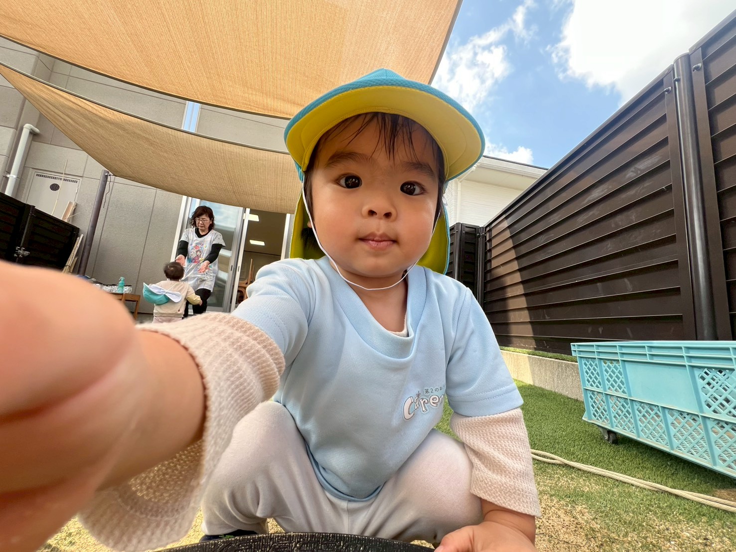 今日は秋晴れで気持ちの良い天気でした☀️園庭にみんなで遊びに行きましたよ💓帽子、靴下、靴を頑張って履いて、りす、ひよこさんはお友達や先生と一緒に頑張りましたよ✨