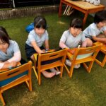 頑張った後の戸外遊びを心待ちにしていて、気持ちのいい気候の中、園庭で繰り返し滑り台を滑ったり砂をかけたりして楽しんでいましたよ🥰