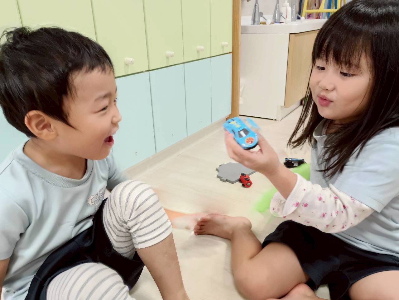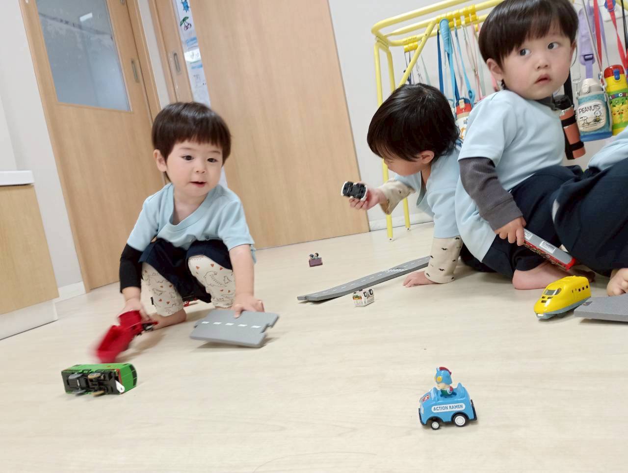 車を滑り台で滑らせてはしゃぐ姿も見られ、友だちや先生たちとのコミュニケーションをとりながら笑顔がたくさん見られました🌞❣️【うさぎ・こあら・きりんぐみ】