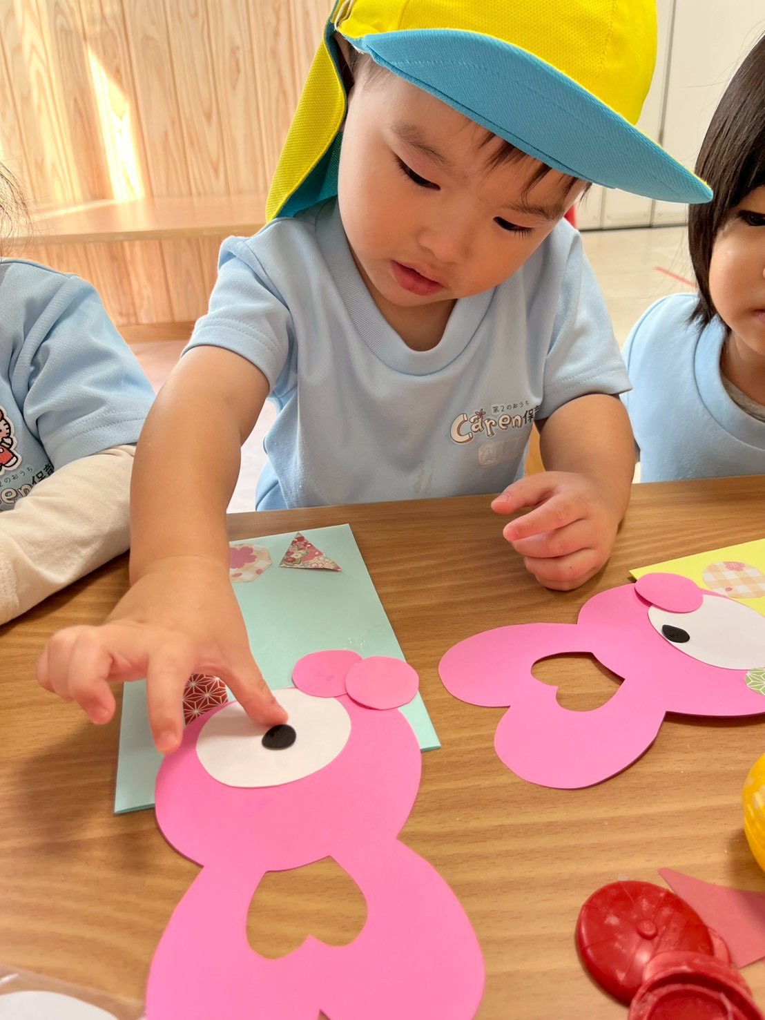 その後は順番に七五三製作👘完成品を見ると、口々に好きな色のことや自分の年齢のこと、どんな表情を描きたいかを話す姿が見られました✨