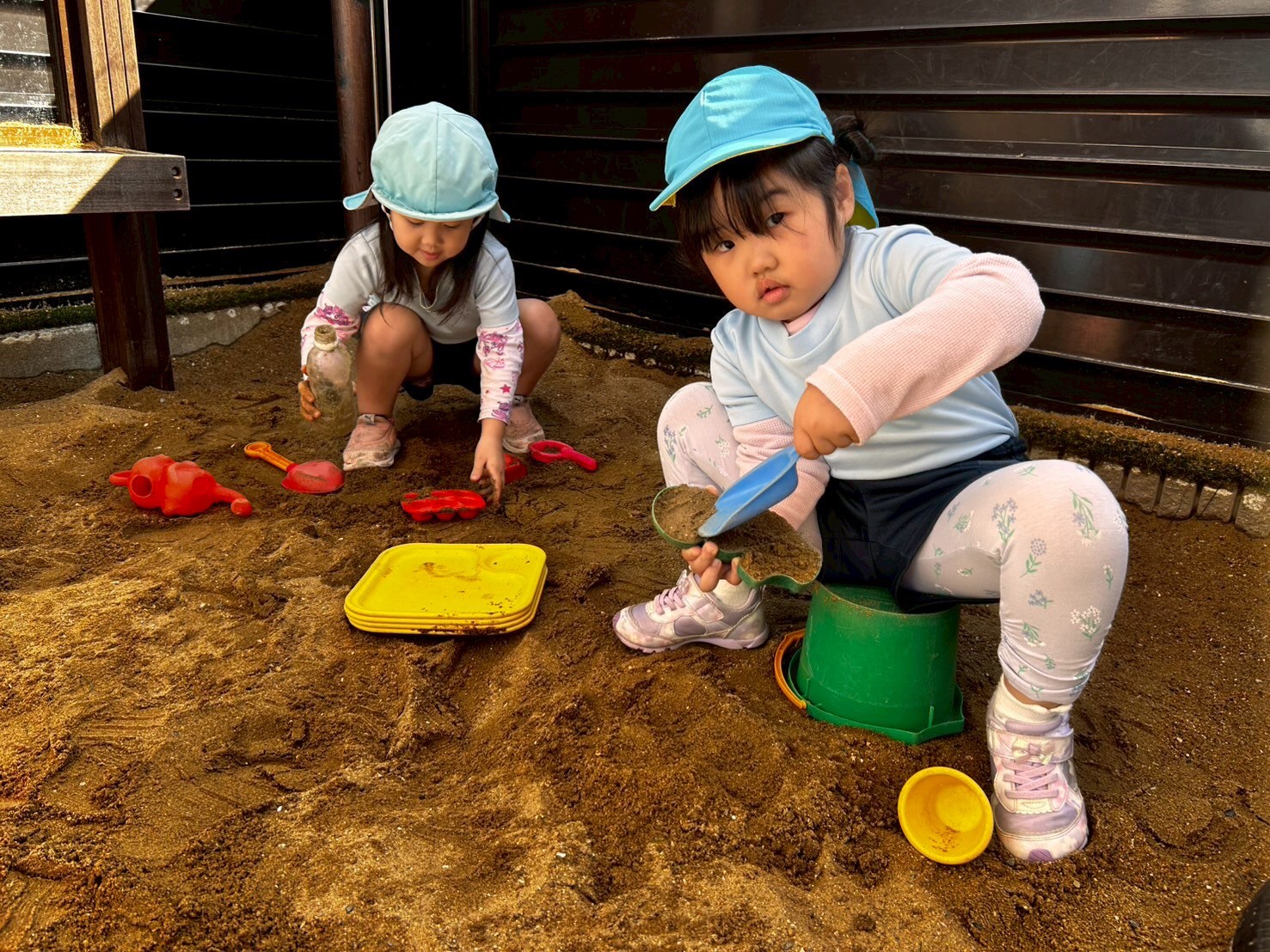 練習の後は園庭でリフレッシュタイム🥰しっとりした砂が人気で砂遊びに夢中になっていましたよ😆🎶