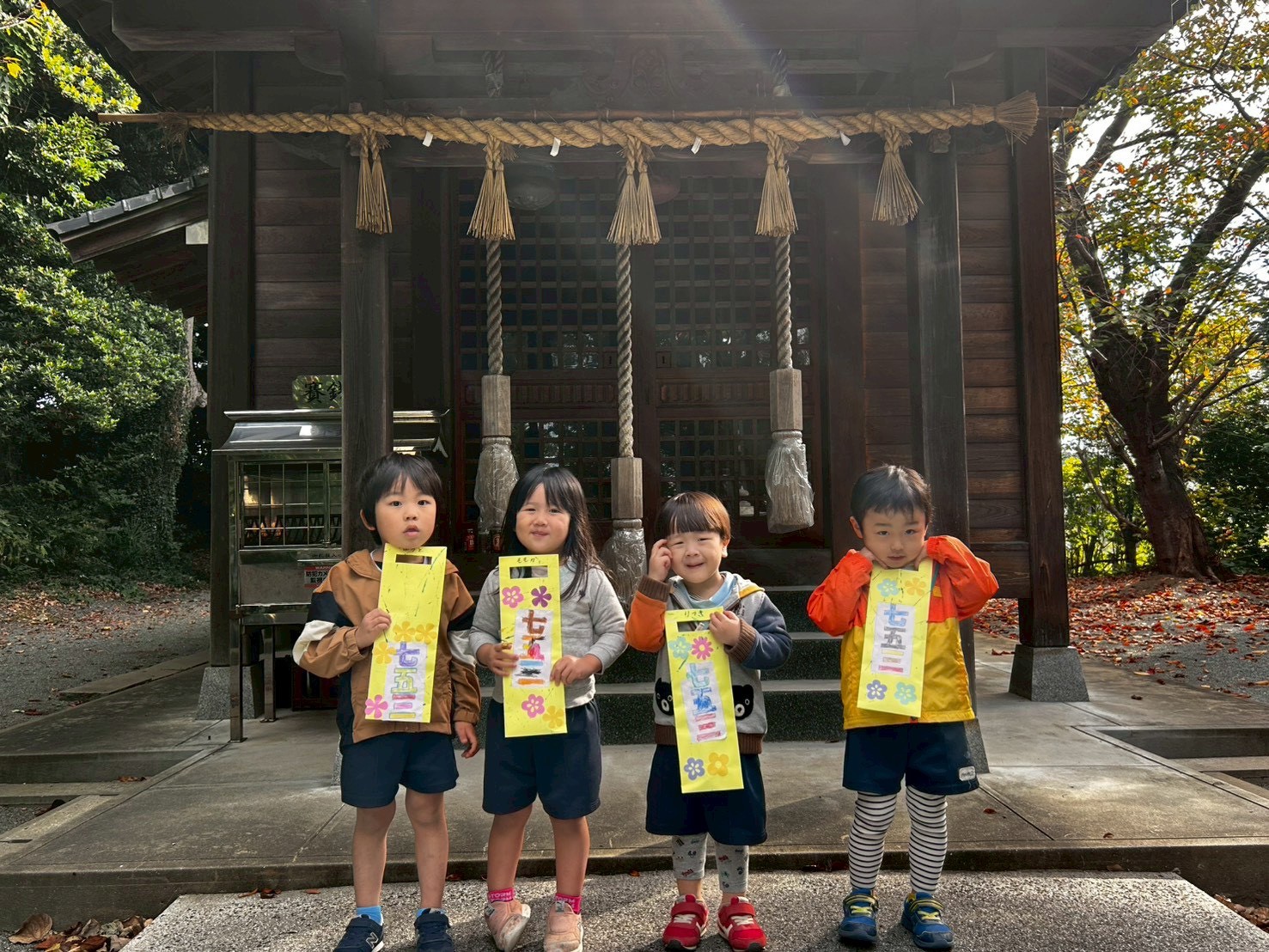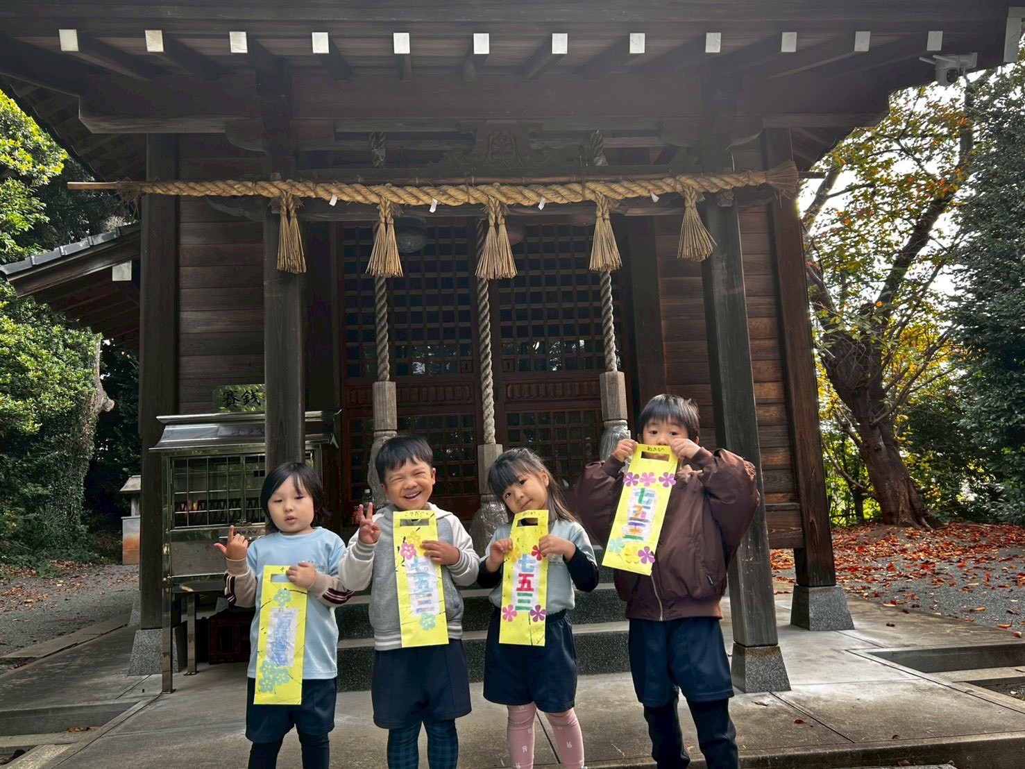 今日は新宮神社に七五三参拝に行きました⛩️しっかりとした足取りで歩き、神社の中でのマナーを学びながら「健やかに大きくなれますように」と5円玉に思いを乗せて賽銭箱へ、みんなでお祈りしましたよ🙏✨