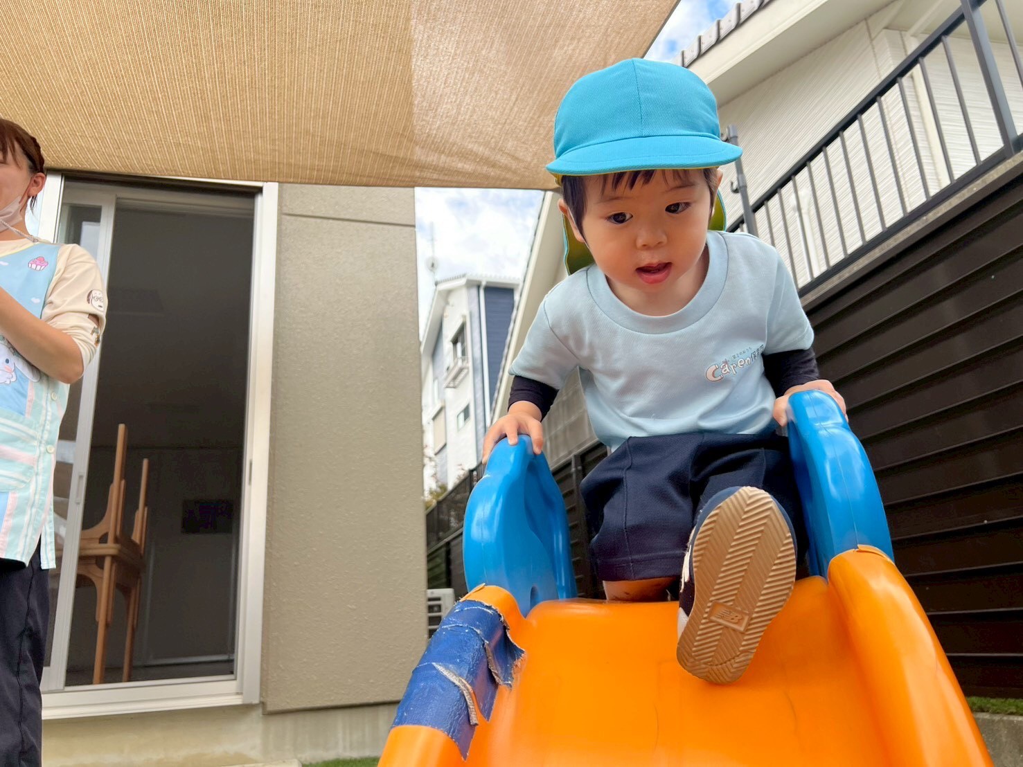 その後の園庭あそびでは、友だちや先生とコミュニケーションをとりながら笑顔で楽しく遊ぶ姿が見られましたよ☺️はいはいをしたり、滑り台を滑ったりして活発に動き回っていました🛝✨