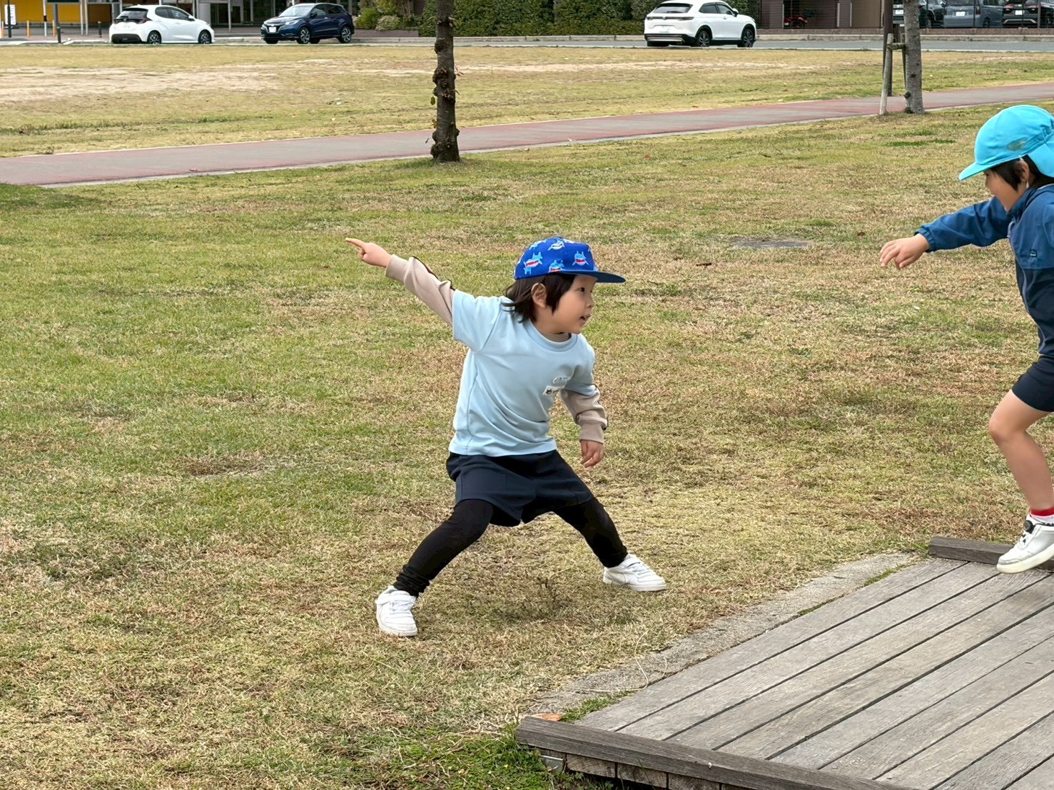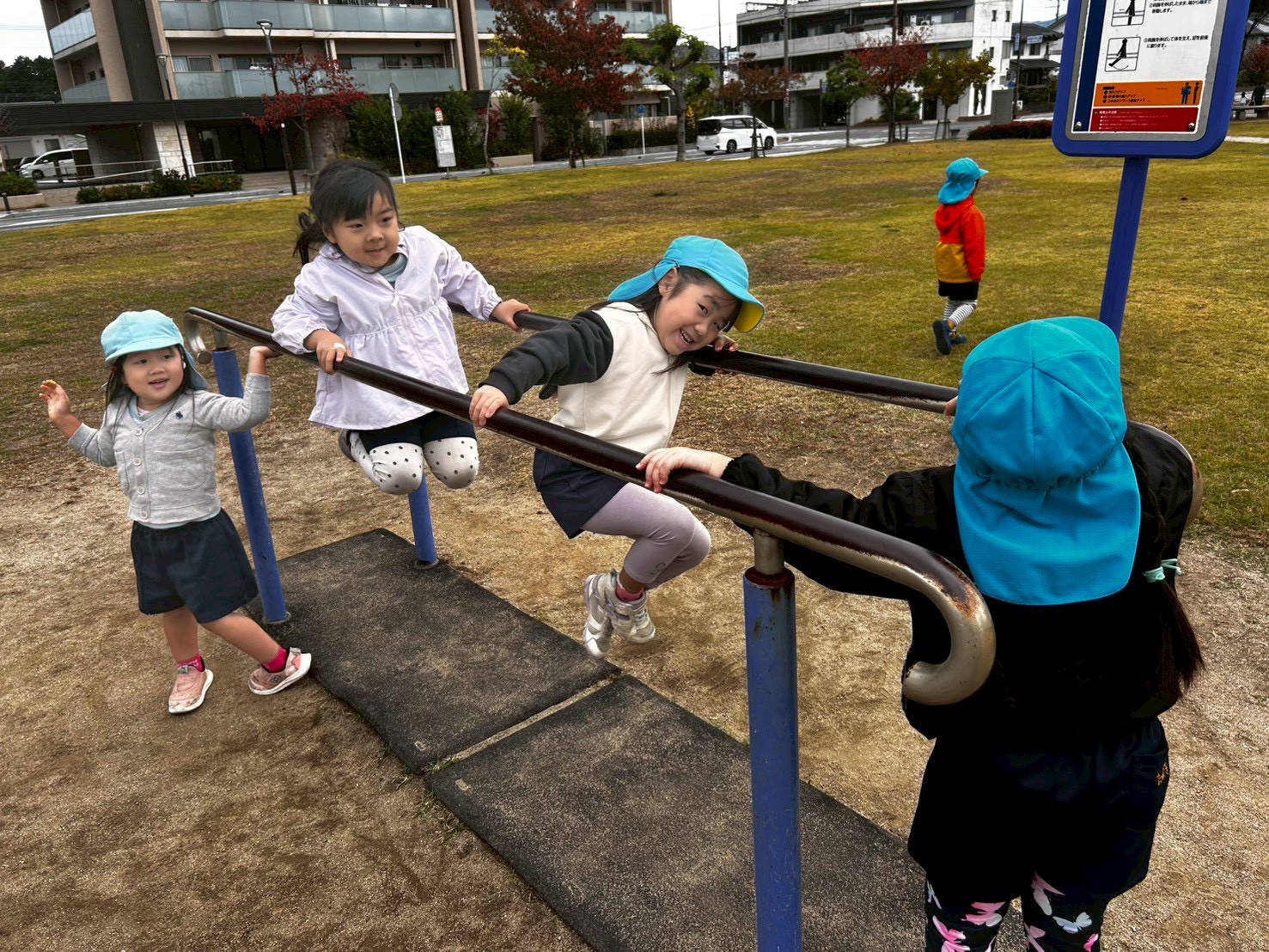 帰りに沖田中央公園に寄り、広い公園の中で沢山走りました🏃➡️💕大人向けの健康器具に果敢に挑む子もいましたよ😊いっぱい体を動かした後の給食はいつも以上に美味しくてハイスピードでした😋🌟