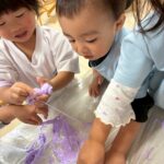 先生の出し物のスライム作りや粘土作りにも興味を示して眺め、楽しんでいましたよ😍触感も味わい、大満足の様子のみんなでした💖ひよこ組さんはすやすや気持ちよさそうに眠っていましたよ😴💓