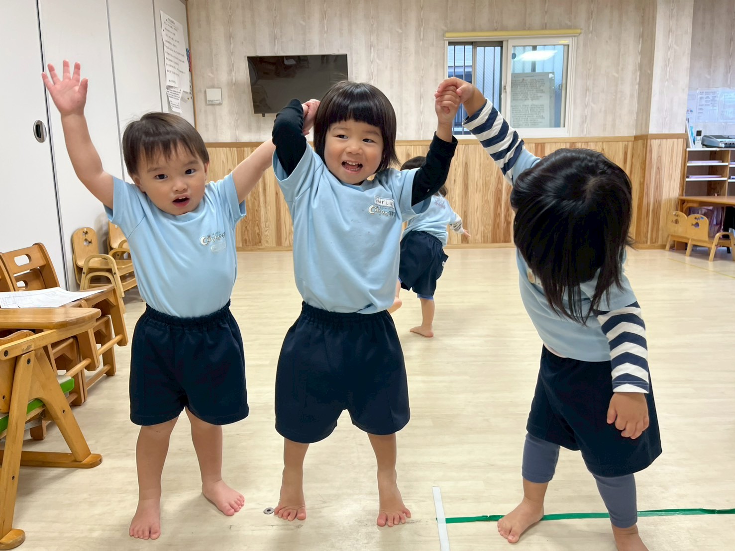 流れを理解して動けている場面も増えてきています⭐️曲が聞こえると自然と身体を動かし始める姿がとってもcuteでしたよ🩷🥰練習後は園庭で自由に遊びました😄