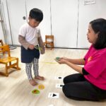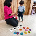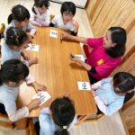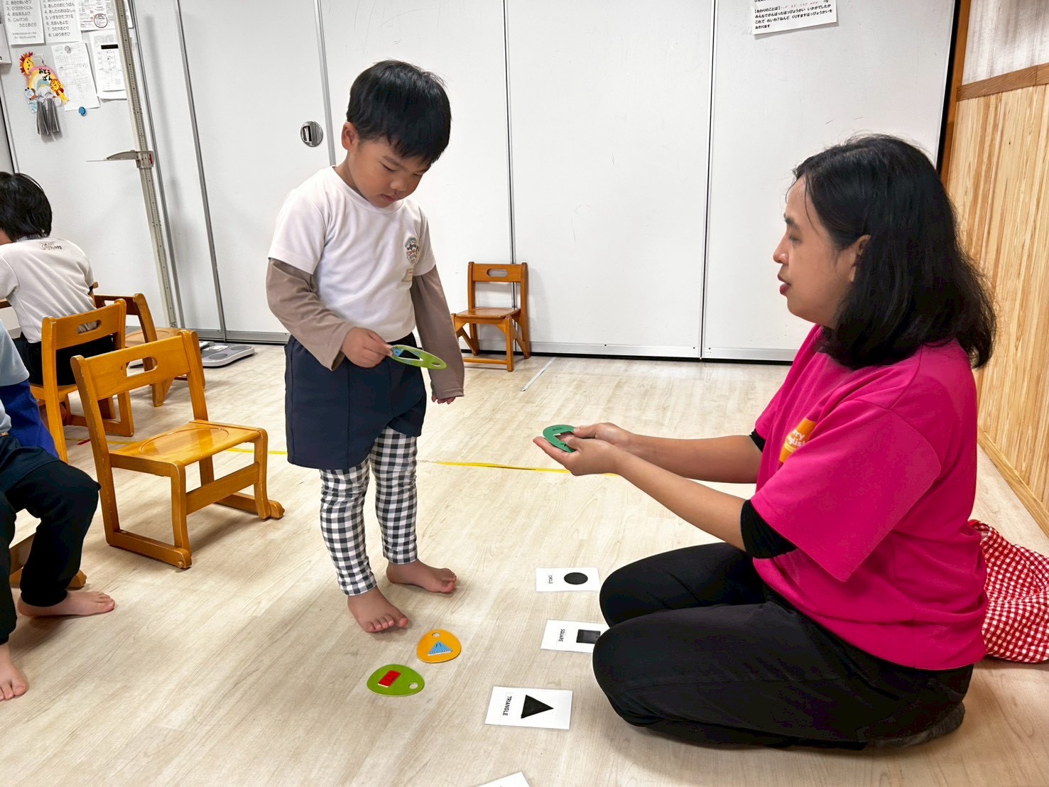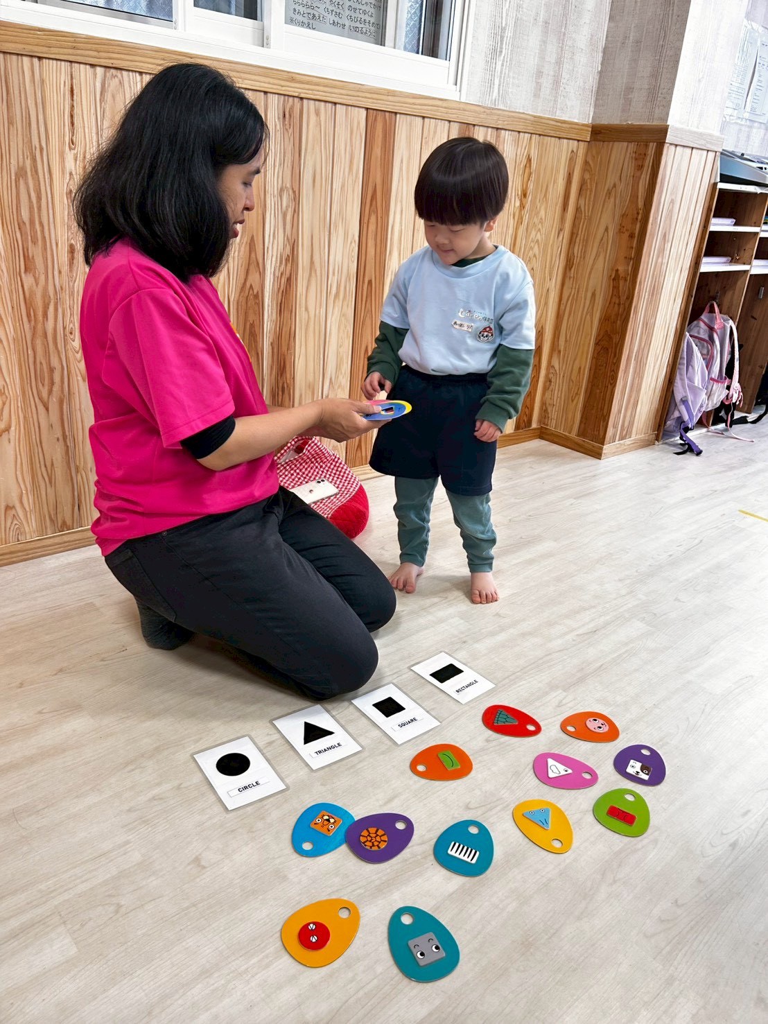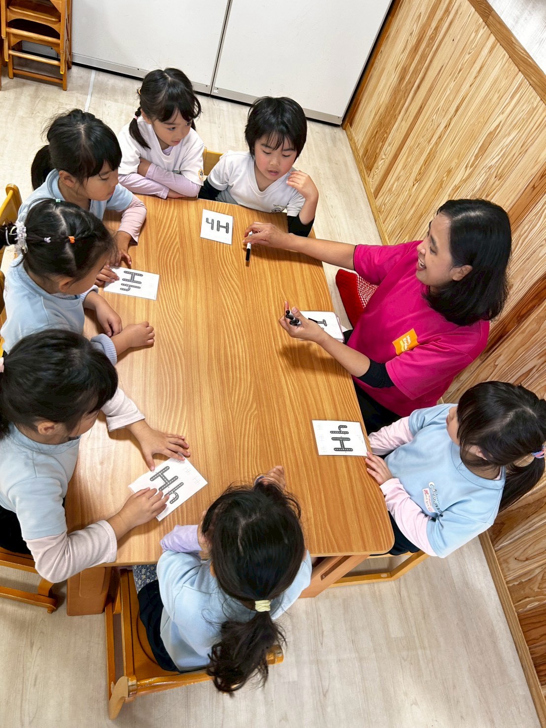 今日は英語レッスン⭐️様々な形や様々な動物のカードを使って楽しくレッスン❣️きりんぐみさんは『H』のアルファベットの書き方も教えてもらいましたよ🤗✨
