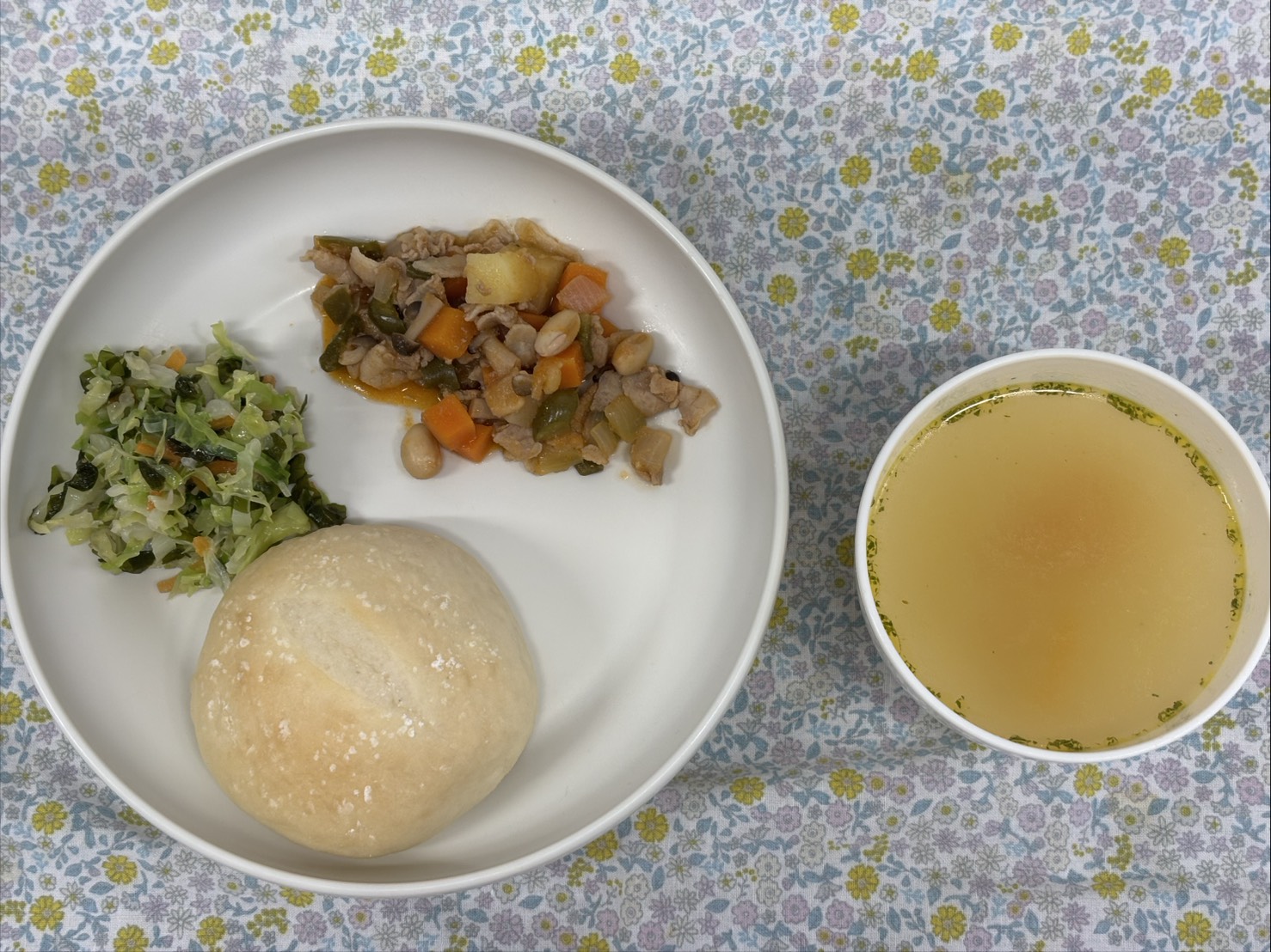 製作では前回作ったクリスマスツリーの周りに、クリスマスの絵を描きました🎄💗クリスマスといえばの問いに「サンタさん、プレゼント、トナカイ、雪」と連想が止まらないようでした🤭クリスマスソングも口ずさみながら楽しい時間でした💗こあらうさぎさんは、リハーサルで確認した立ち位置を意識しながら劇の練習もしましたよ🥰【新宮園の今日の給食です】