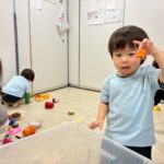 お皿をたくさん並べてご飯を作ったり、コップの中に物を隠してどっちでしょ😁と隠して遊んだり思い思いに楽しんだリスさん、ひよこさんです🥰【ぱんだぐみ】