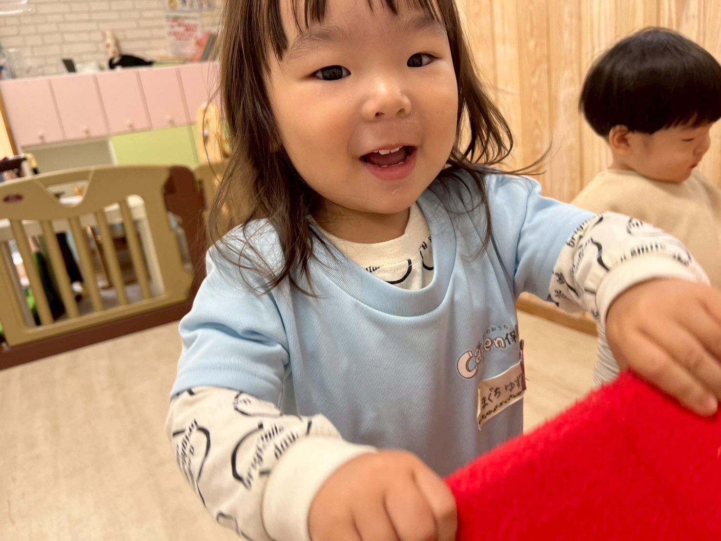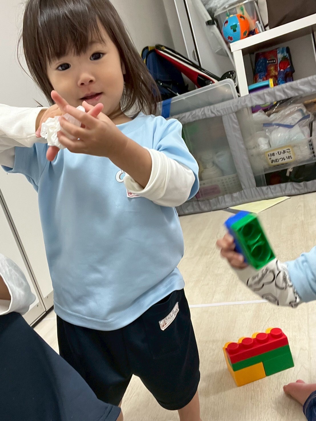 その後は久しぶりに大きなブロックで遊びました💕高く積み上げたり、椅子にしたり思い思いに楽しんでいました😆みんなのお気に入りは「わーっ」と言いながらブロックを投げることでした。ニッコニコで🥰ゆったりと穏やかな時間が流れていました😊【りす・ぱんだぐみ】