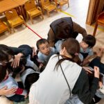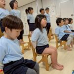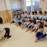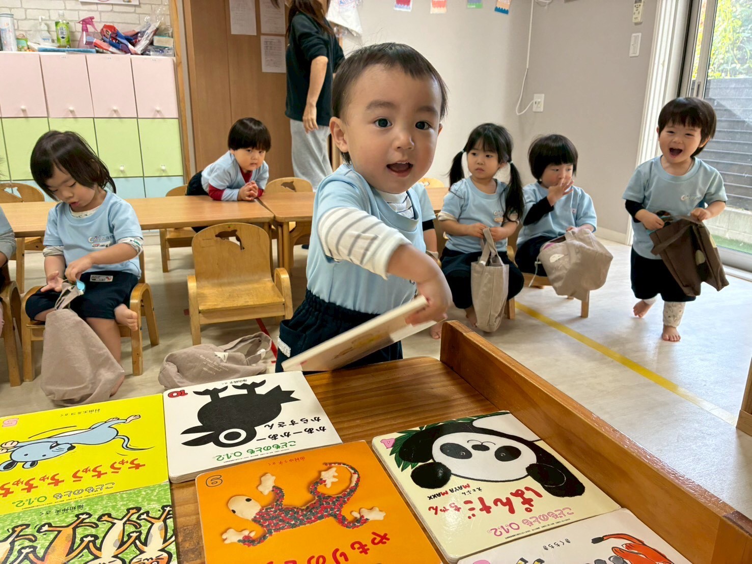 絵本の読み聞かせを楽しんだ後は、地震からの火災を想定した避難訓練。警報音に驚いて泣く子もいましたが、安全な場所に集まりダンゴムシのポーズで避難しました。その後は続けて火災🔥口を押さえながら避難をする姿も見られるようになってきました✨みんな頑張って避難することができました。○×クイズでの先生の話にもしっかりと耳を傾けていました。泣いているひよこさんをよしよしする姿も見られましたよ🥰