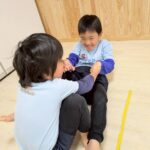 その後は久しぶりに大きなブロックで遊びました💕高く積み上げたり、椅子にしたり思い思いに楽しんでいました😆みんなのお気に入りは「わーっ」と言いながらブロックを投げることでした。ニッコニコで🥰ゆったりと穏やかな時間が流れていました😊