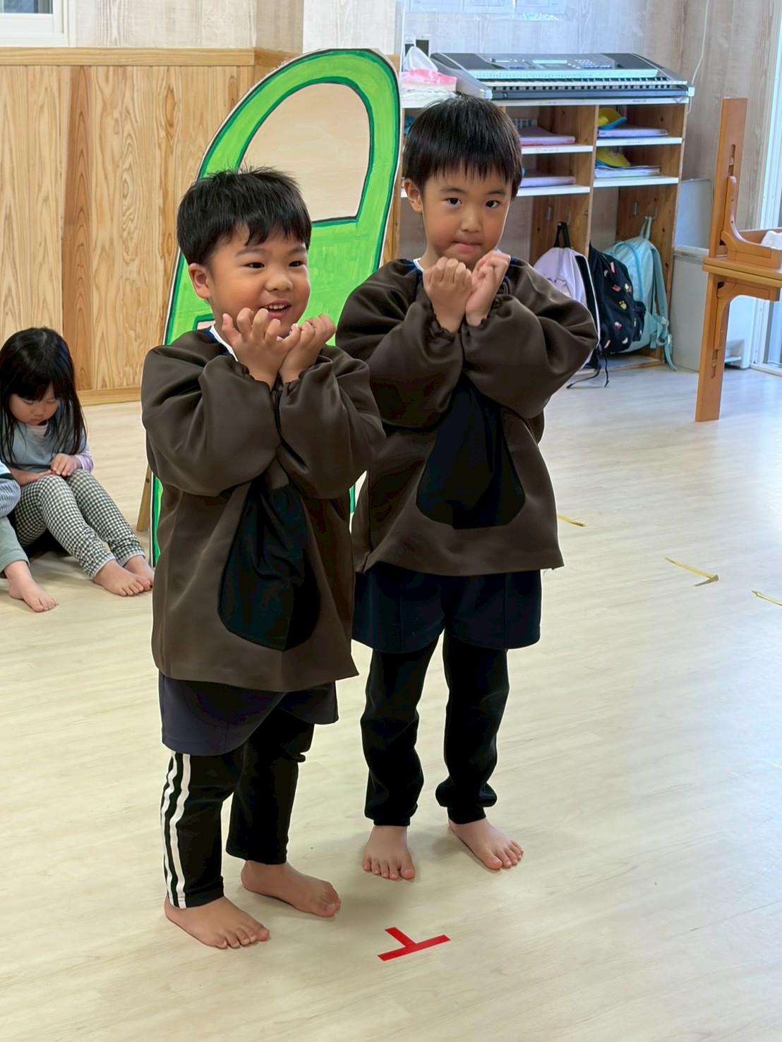 いよいよ発表会まで1日になりました❣️明日はママパパに見てもらうと大張り切りで練習も頑張って💮はなまるをもらった子どもたちでした🥰明日は練習どおりにはいかないかもしれませんが🥹頑張ってきた姿、成長した姿をたくさん見てもらえたら嬉しいです💗【うさぎ・こあら・きりんぐみ】