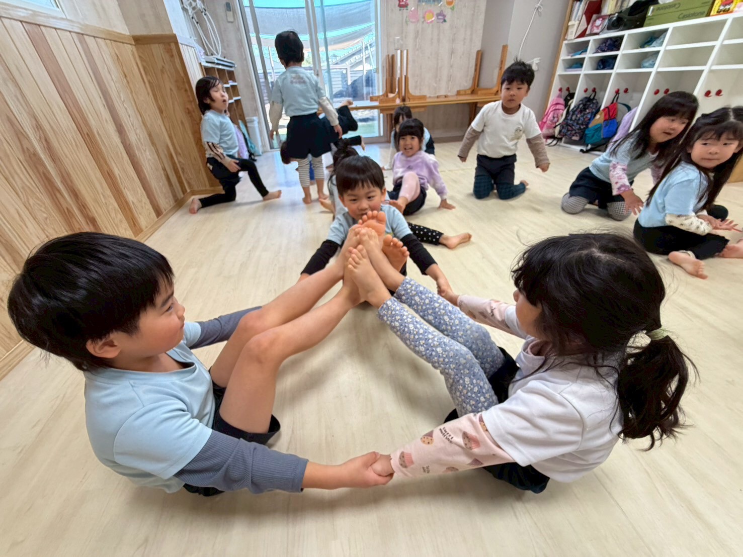 今日は「くずかごおばけ」という絵本を読みました📙ちょっぴり怖い場面があり、絵本の世界にどっぷり入っていた子どもたちです🤗それかわ、ふれあい遊びをしました✨組体操のように数人で手を繋いで足をあげたり「猛獣狩り🦁🦣🦒」をしたりと、遊びの展開がとてもおもしろかったようです😆その後、園庭で氷鬼ごっこや鬼ごっこ、砂場でゆっくりと遊び、順番が来たら歯科検診を受けました🦷大人の歯が生えている子もいれば、虫歯の子も😱😱😱まだ仕上げ磨きが必要ですので、頑張りましょうね‼️本日、検診結果を持ち帰っていますので、ご覧になり通院が必要な場合は早目に病院にいくようよろしくお願いします🙇♀️
