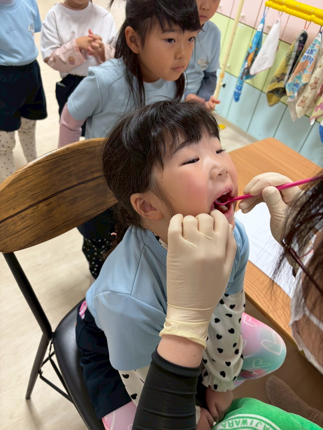 今日は歯科検診でした🦷少し怖がる子もいましたが、事前にみんなで大きな口を開ける練習もして、最後まで頑張ることができました👏「泣かずにできる子が多いね!歯が綺麗な子が多いね!」と褒められましたよ🙌💕