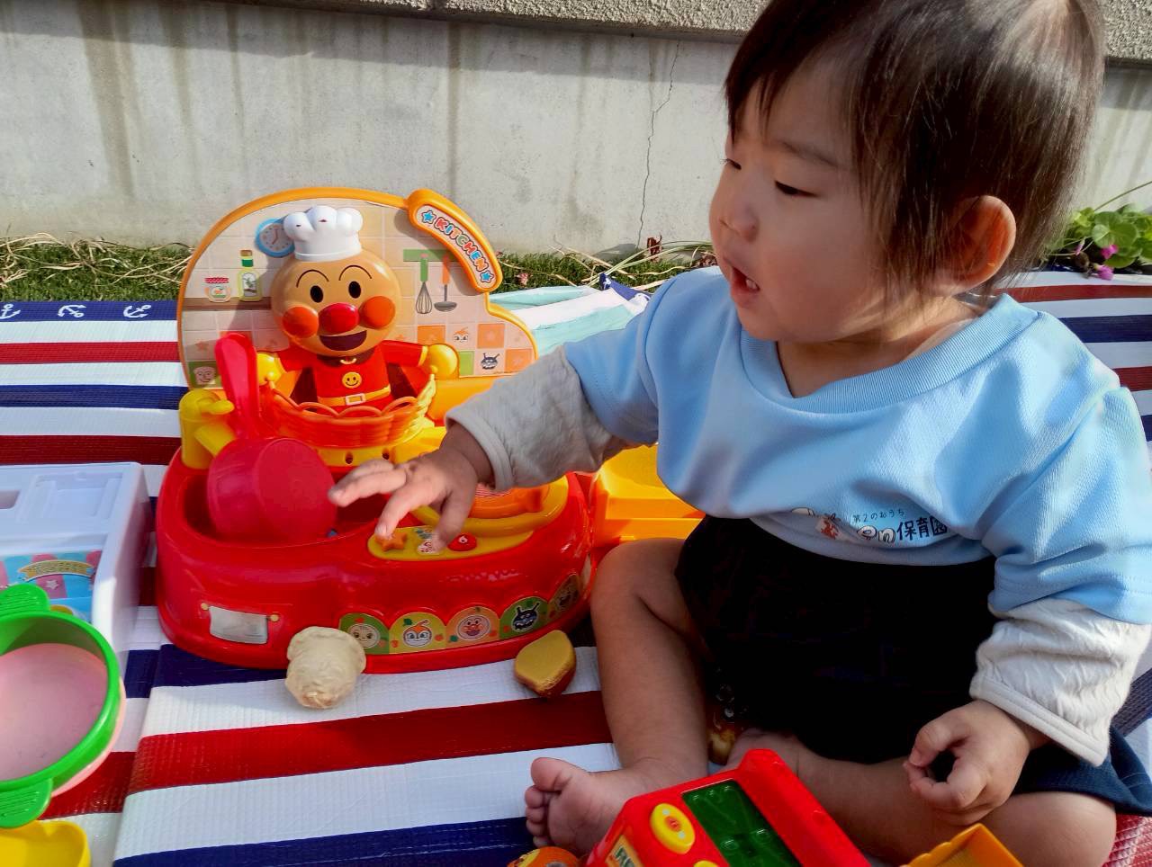 レジャーシートをしいてままごと遊びをしたり、滑り台🛝をしたり