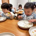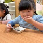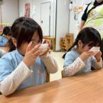 その後、食育がありました🥄今日は『どんな味⁉️』についてです。緑茶、マシュマロ、出汁など様々な味覚を感じ、最後にレモン汁で酸っぱい顔に😆舌のどの部分でどんな味覚を感じているのか、とてもわかりやすく教えて頂きました💕最後にリボーンベジタブルで育てていた小松菜を収穫し、本日のお汁に入れてくれると聞き、期待が膨らみました😋給食までの間、ぬりえをゆっくりと楽しみましたよ✏️お汁に入れた小松菜が「少なーい!もっと食べたかった〜😖」という子もいて、自分で育てて食べるっていい経験だなと感じました❤️【新宮園の今日の給食です】