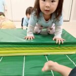 マットに段差をつけ、上ったり下りたり…ゴロンゴロンしたり!サーキットにように!JUMP‼️したりと身体をたくさん動かしました🤗