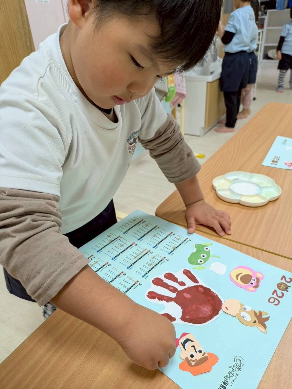 レッスンの待ち時間にはカレンダー製作をしました🎶来年の干支は午ということで、みんなの手形を使い、トイストーリーの可愛いカレンダーが出来上がりました😍