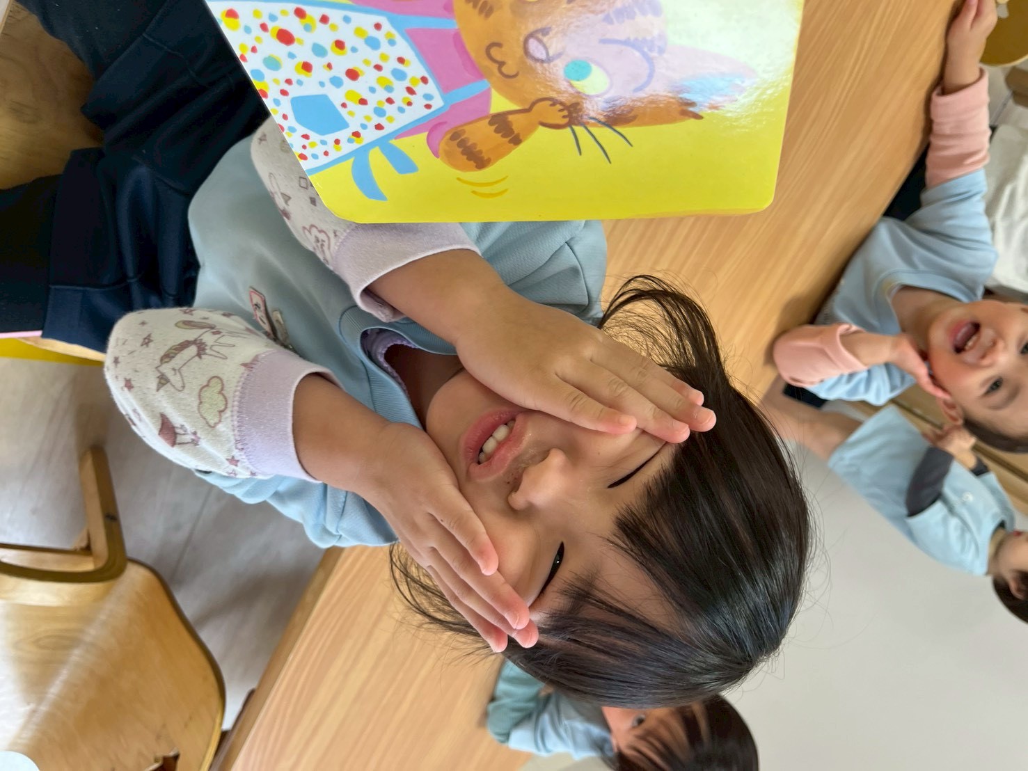 先生の言葉かけや絵本の内容に興味を示し、笑顔で反応しながら終始楽しそうに見ることができていましたよ😍